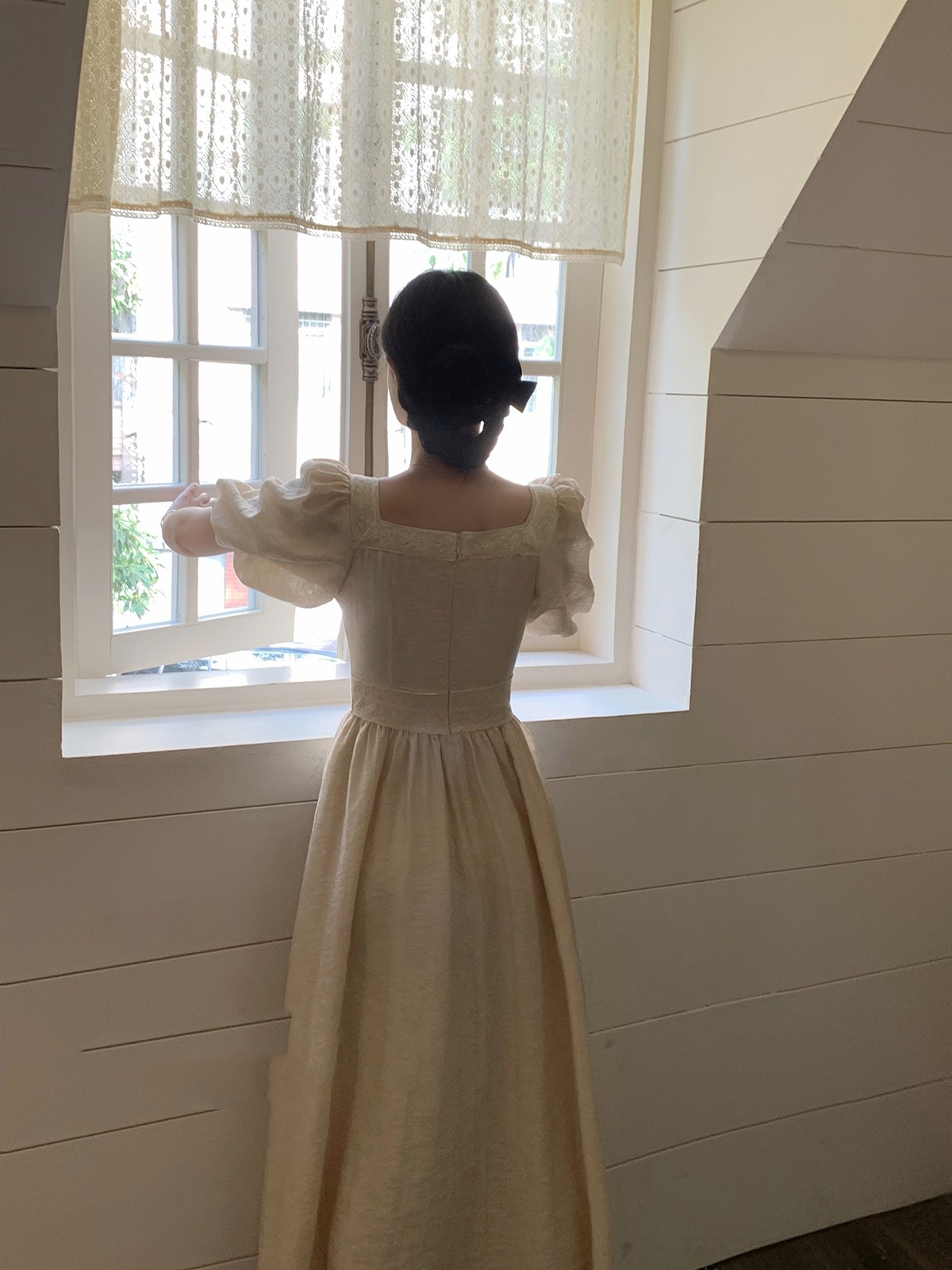 Linen Jacquard Heavy Duty Square Neck Dress