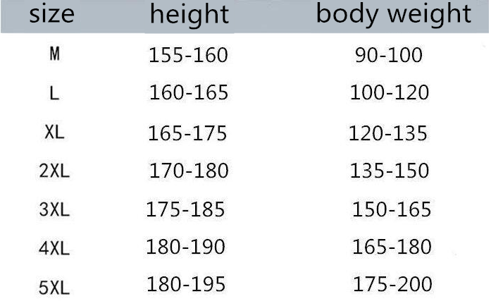 Size: M, L, XL, 2XL, 3XL, 4XL, 5XL