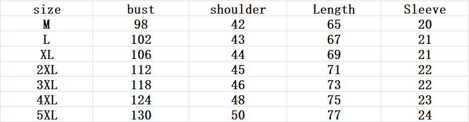 Size: M, L, XL, 2XL, 3XL, 4XL, 5XL