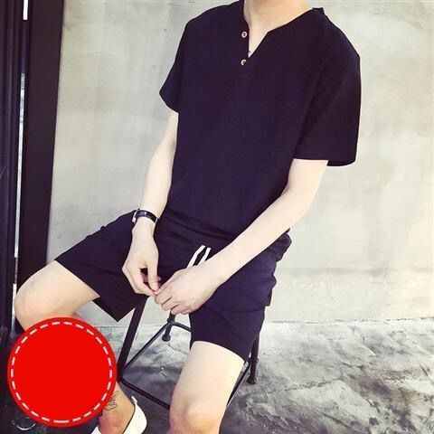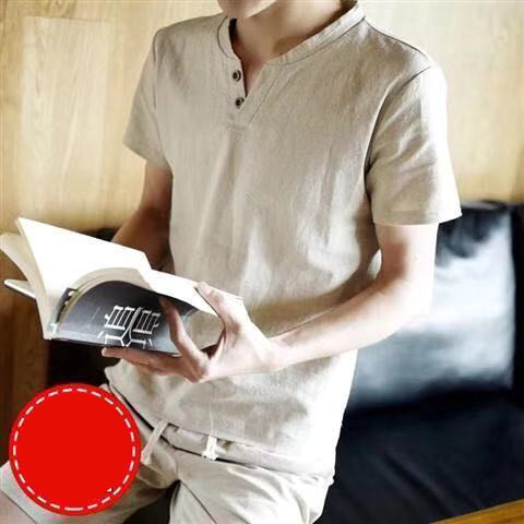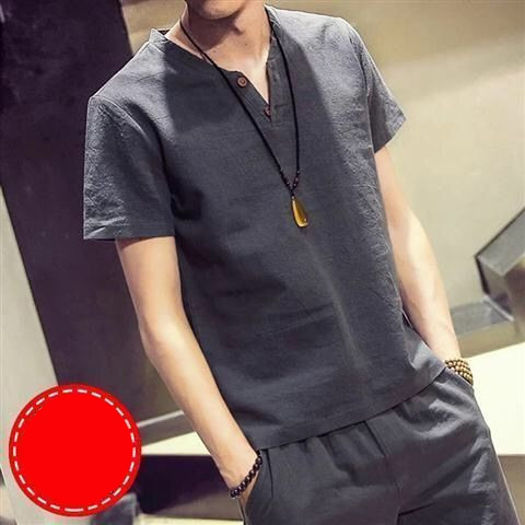 Linen Short Sleeved T Shirt Men's V Neck Half Sleeved T Shirt