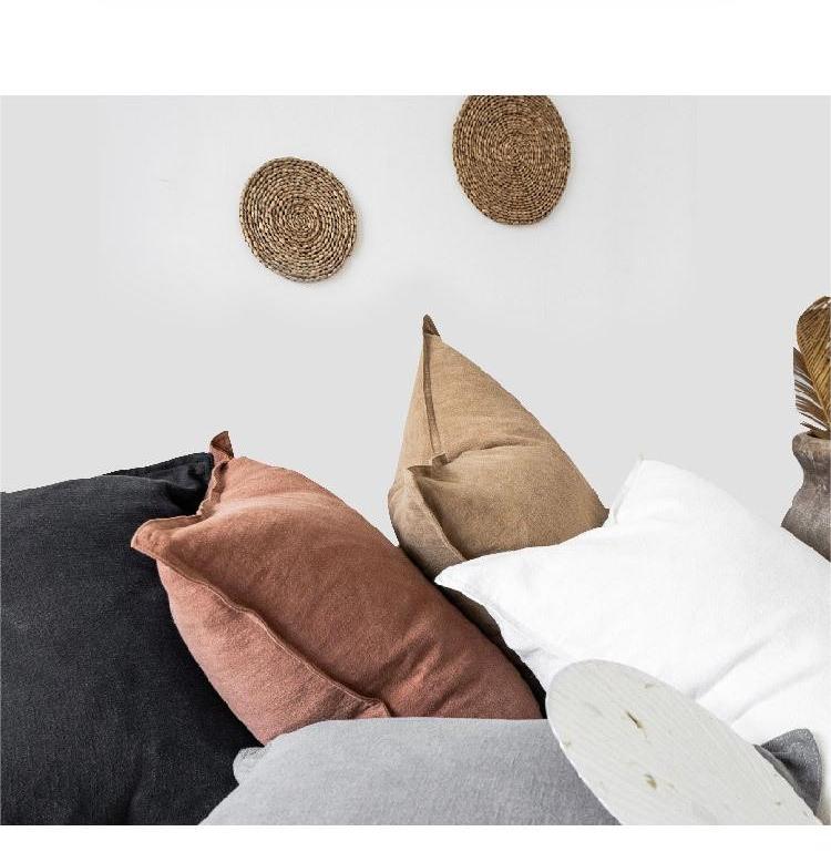 Cotton and linen double needle throw pillows return to nature, simple cells have good air permeability, full modeling, plus points for soft packaging.