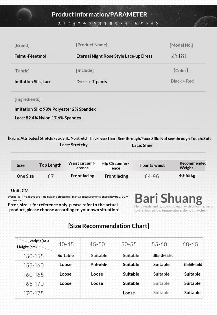 Color: Eternal Night Rose Red + Black [Dress + Thong]