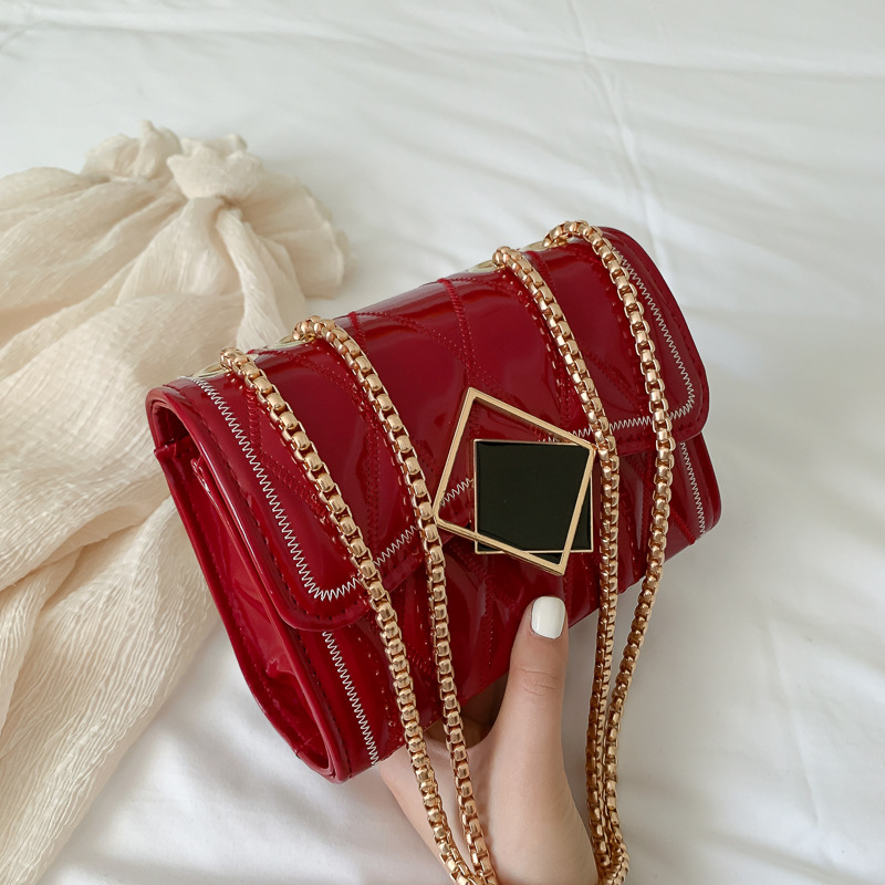 Lingge Chain Small Bag Western Patent Leather Shoulder Messenger Bag