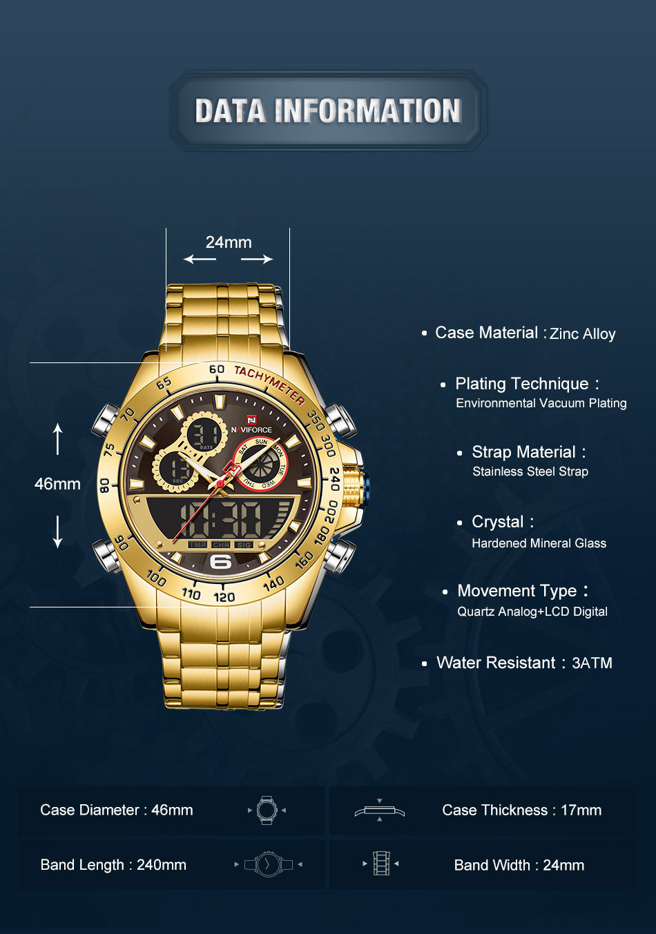 Dial diameter: 46mm