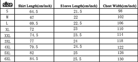 Size: S, M, L, XL, XXL, XXXL, XXXXL, 5XL, 6XL
