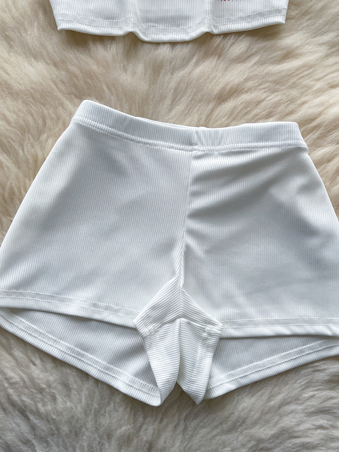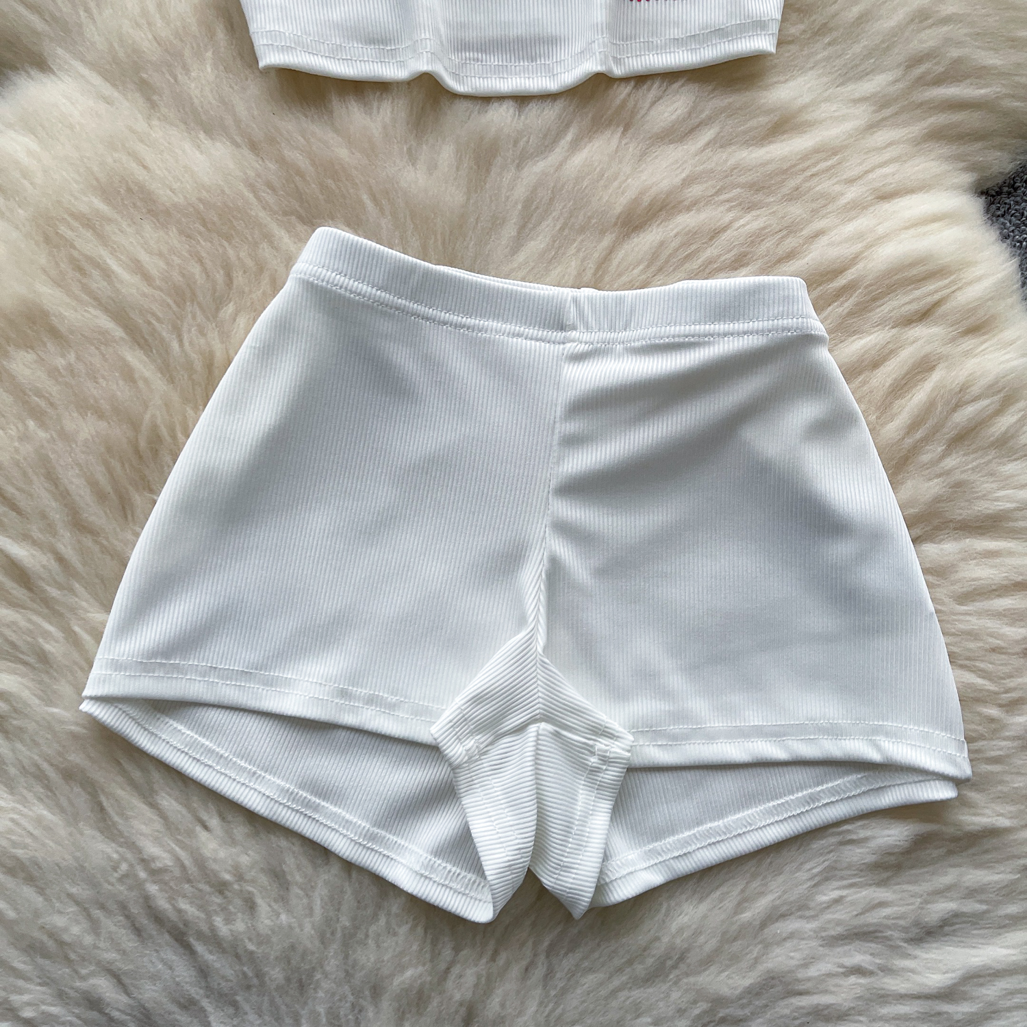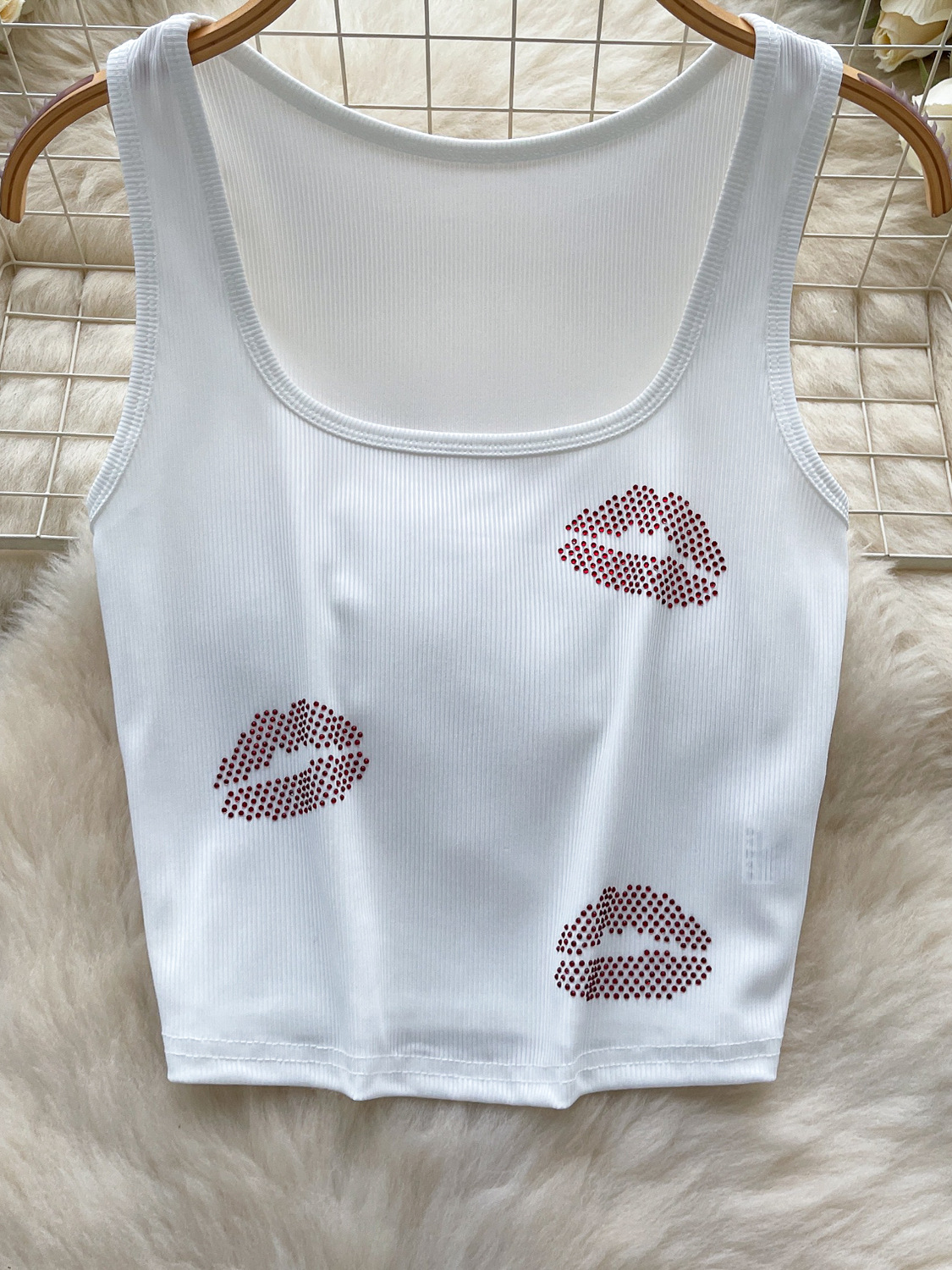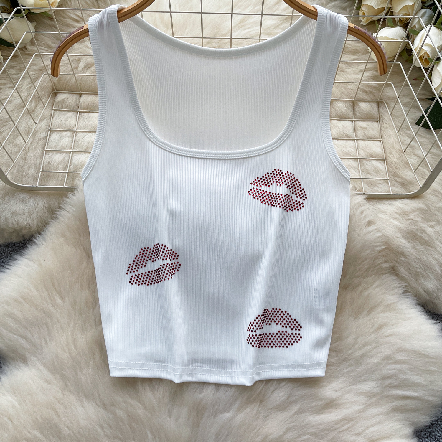 Lip-kiss Rhinestone Square-neck Sleeveless Tank Top With High-waisted Leggings And Shorts