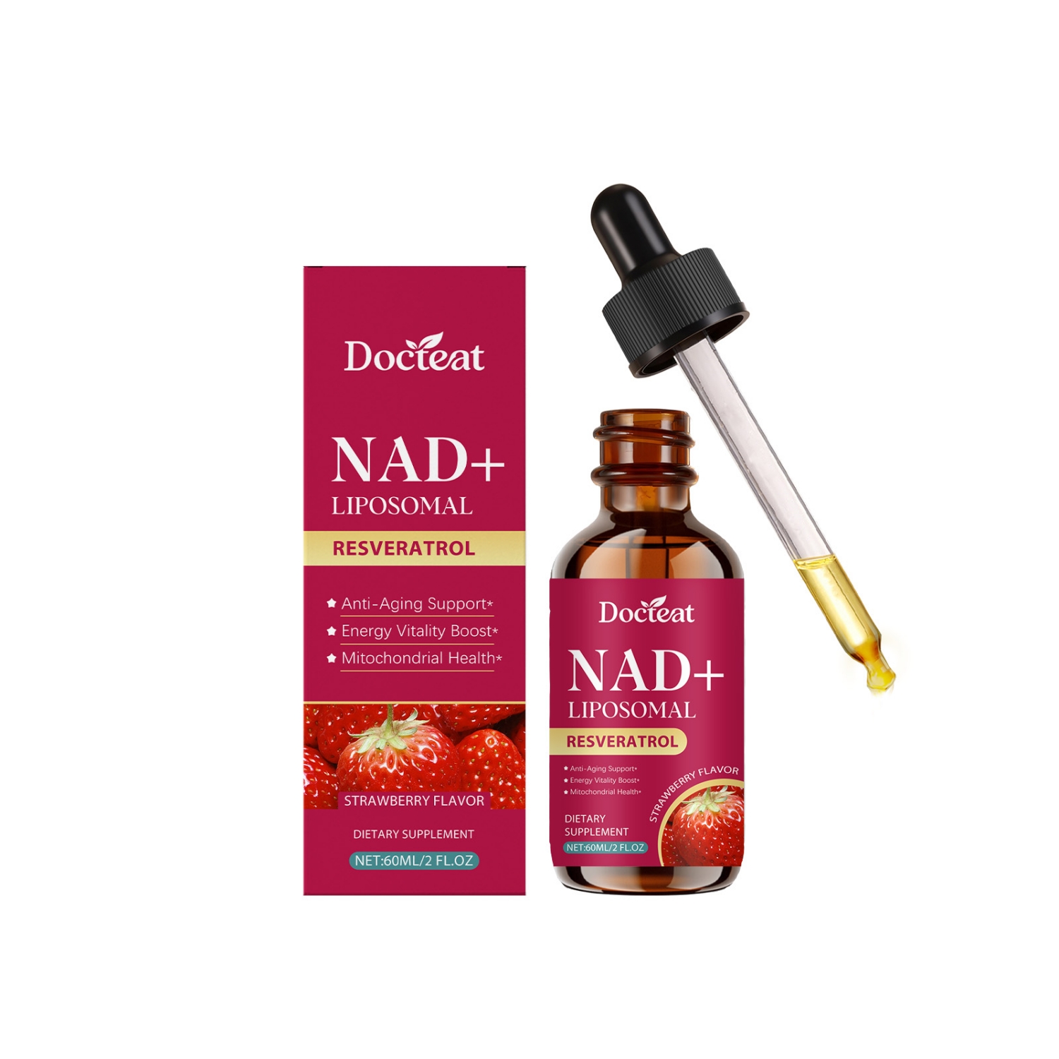 Ingredients: liposome NAD+, trans-resveratrol, black pepper extract