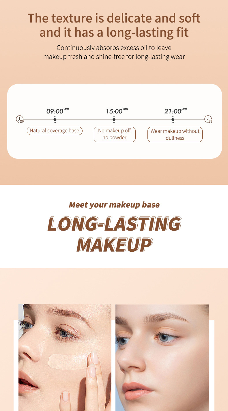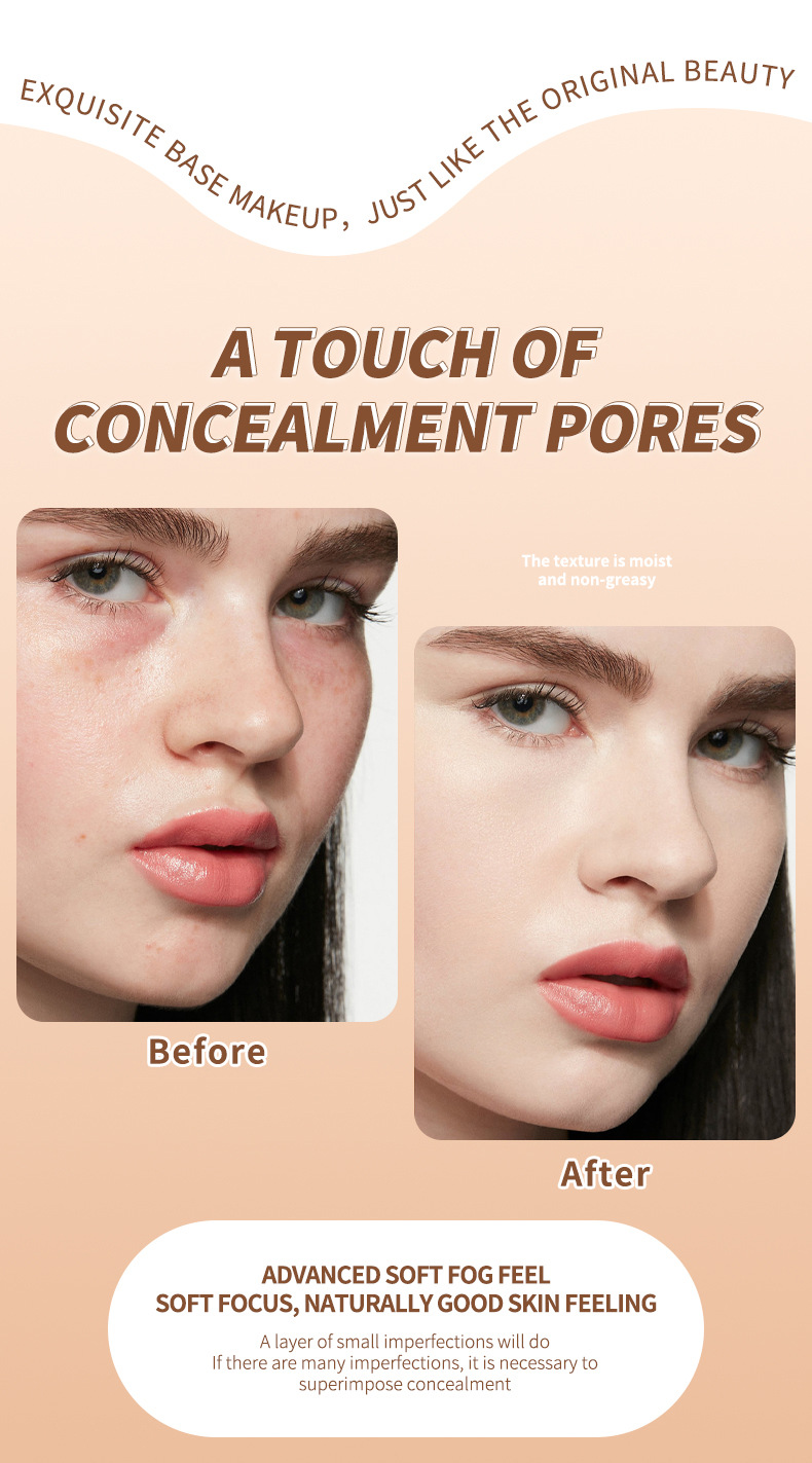 Efficacy: waterproof, concealer, lasting, improve skin color, invisible pores, anti-tarnish, moisturizing, lightweight