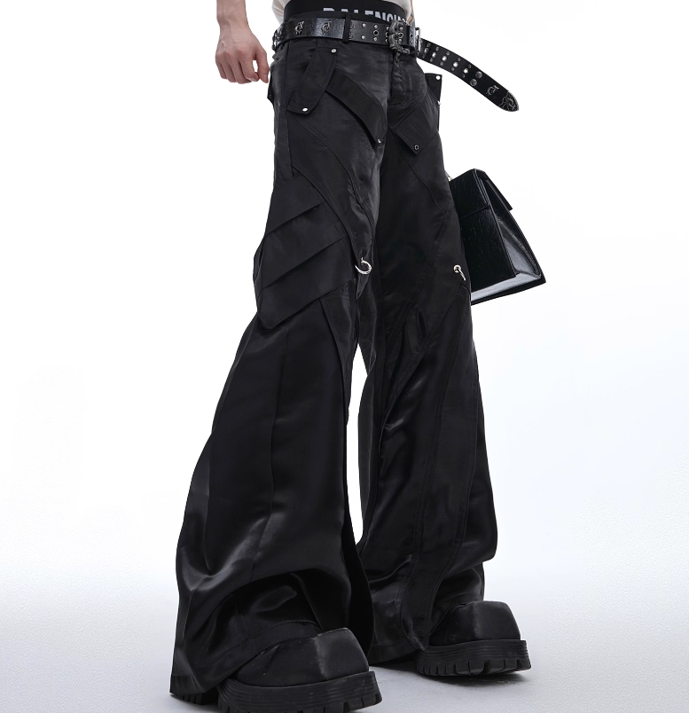 Liquid Glossy Deconstruction Leather Metal Buckle Slightly Flared Casual Pants
