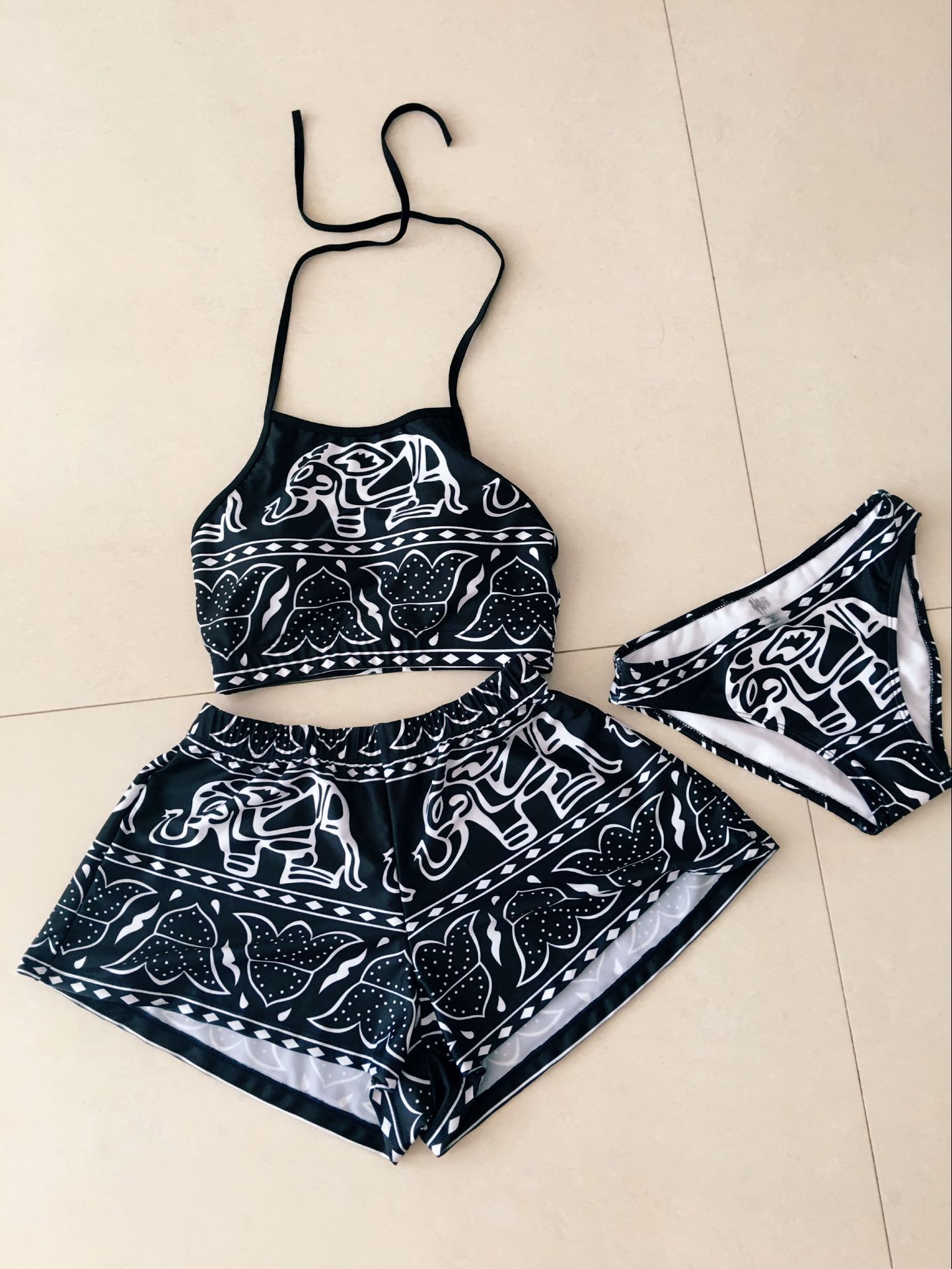 Little elephant tide brand bikini three-piece swimsuit vest high waist swimsuit women