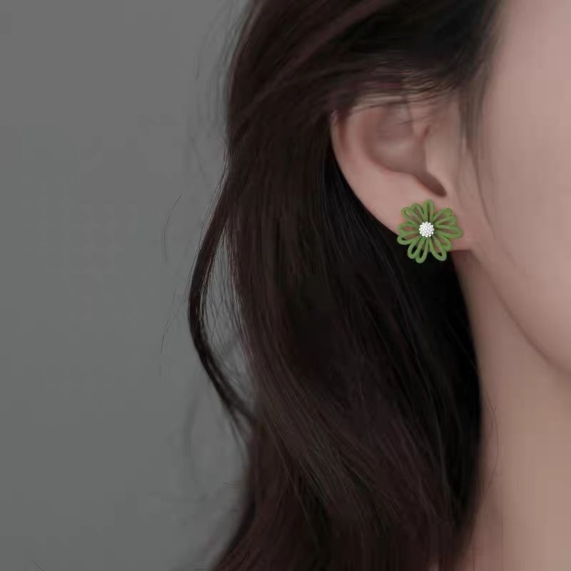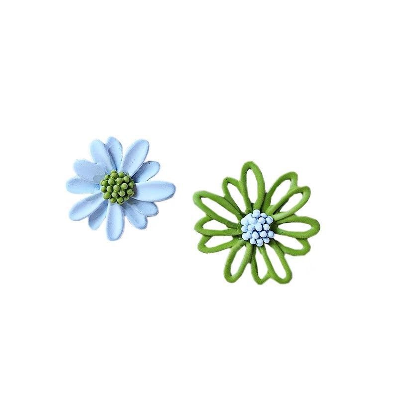 Color: white and two-tone green stud earrings (not steel needle), yellow and white two-tone stud earrings (not steel needle), blue and orange two-tone stud earrings (not steel needle)