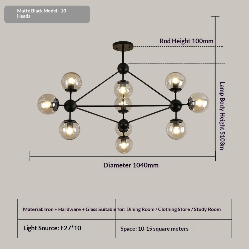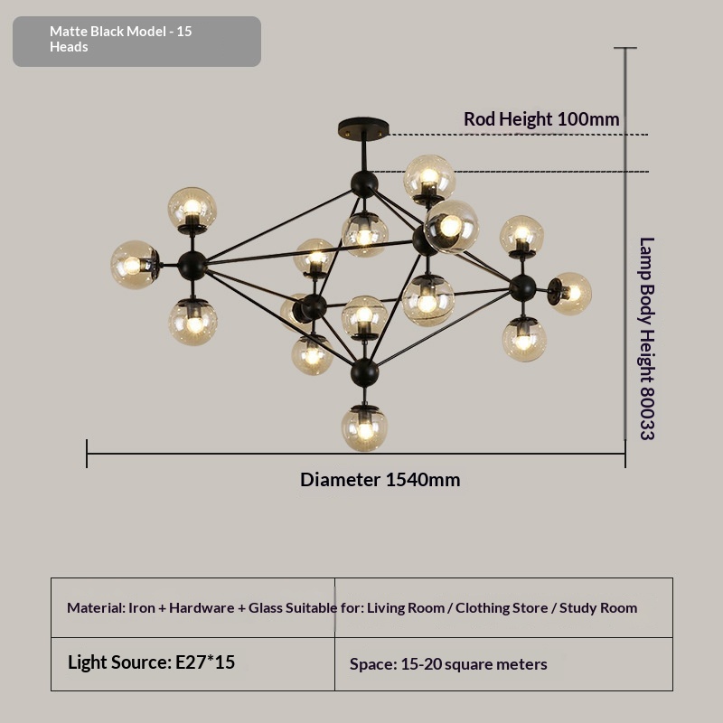 Light color options: 10 heads – matte black [default cognac lampshade], 15 heads – matte black [default cognac lampshade]