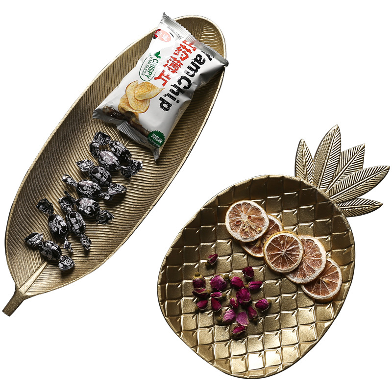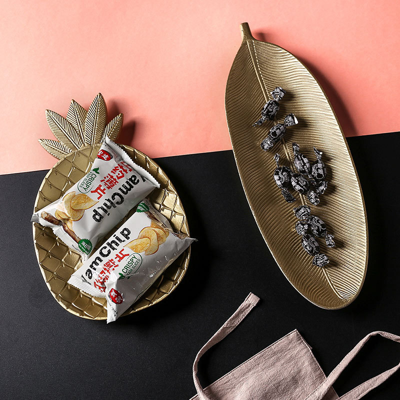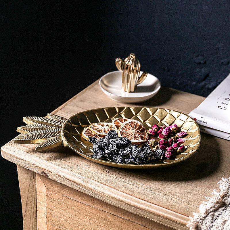 Nordic golden pineapple storage tray, leaf board, golden pineapple jewelry, fruit popsicle, snack board, dessert tray, decorative storage box