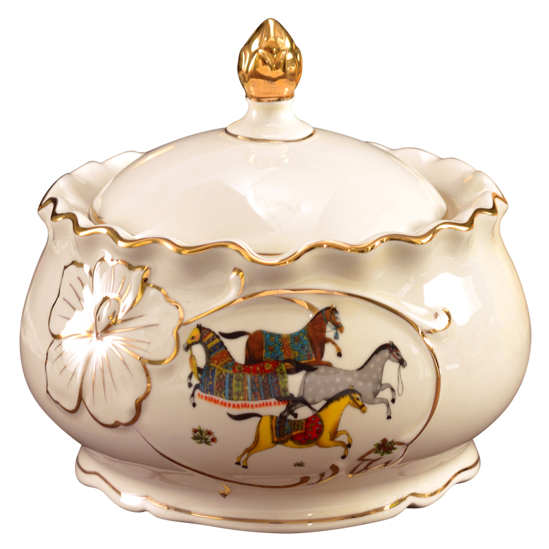 Color: Qingfang Rose 4-compartment dried fruit box with lid, four-compartment dried fruit tray Qingfang Rose, crown candy box, branch