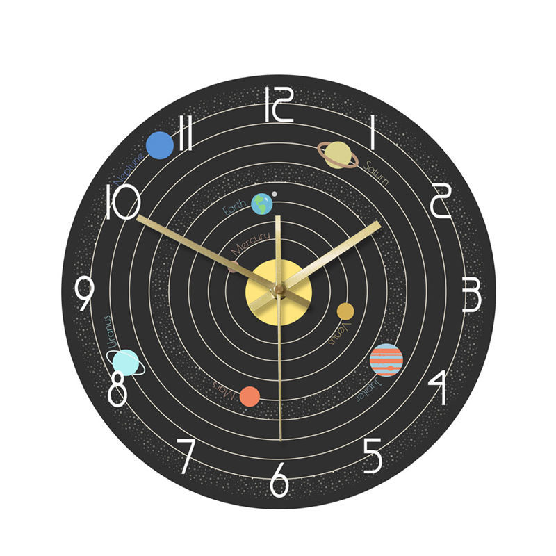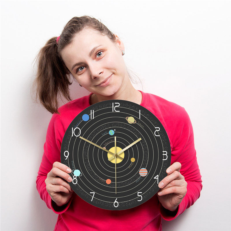 Location Map Of The Nine Planets Of The Solar System In Space Modern Wall Clock Astronomy Education Decoration Clock Wall Clock Cross