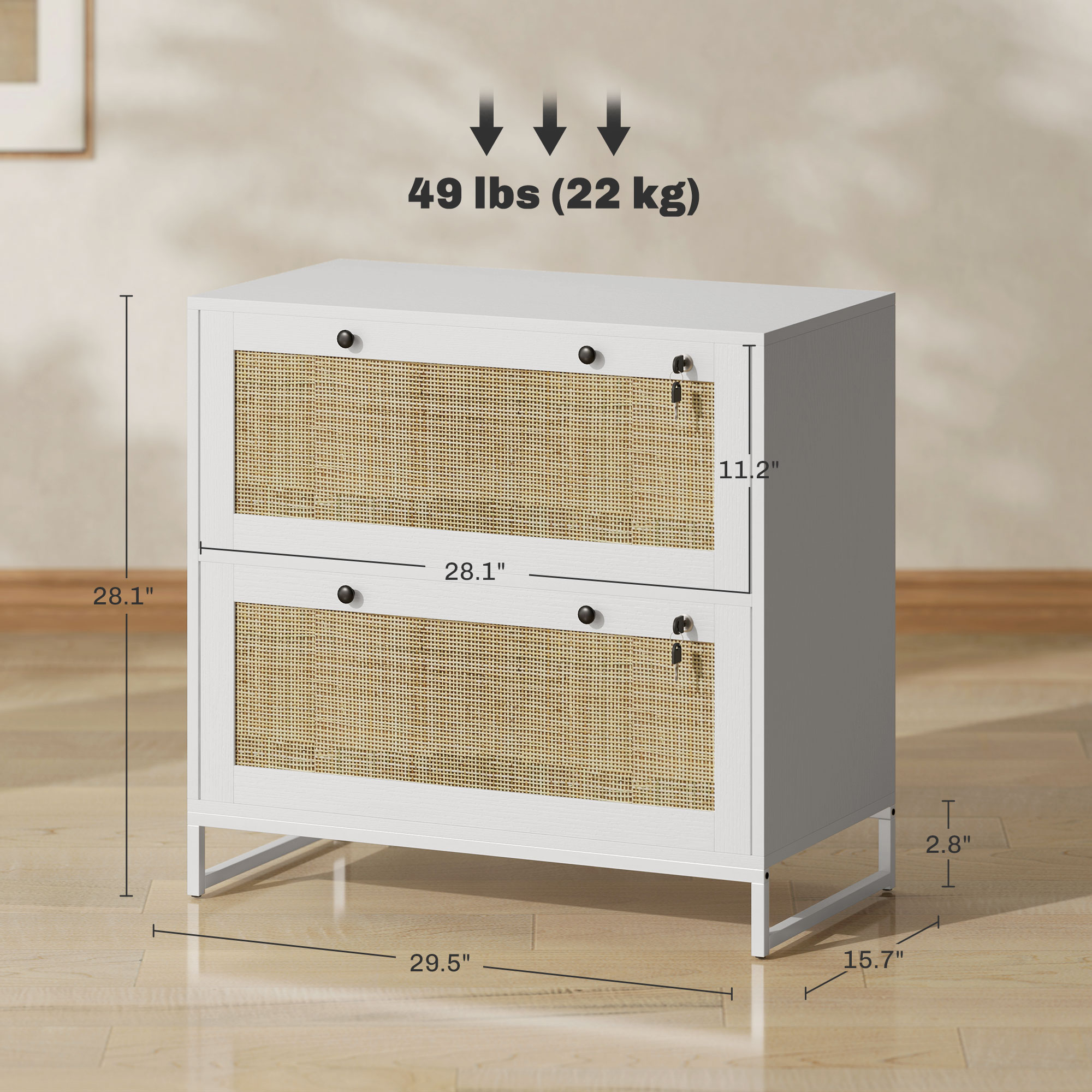 - Each drawer has a lock and two keys to keep your paperwork safe