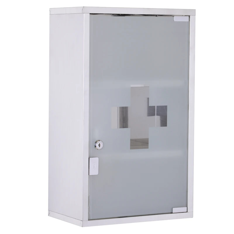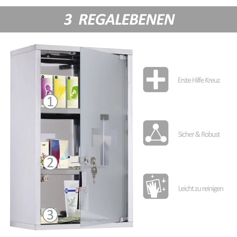Lockable Medicine Cabinet, 3 Tier Stainless Steel Medical Wall Box With 2 Keys And Shelves For Bathroom
