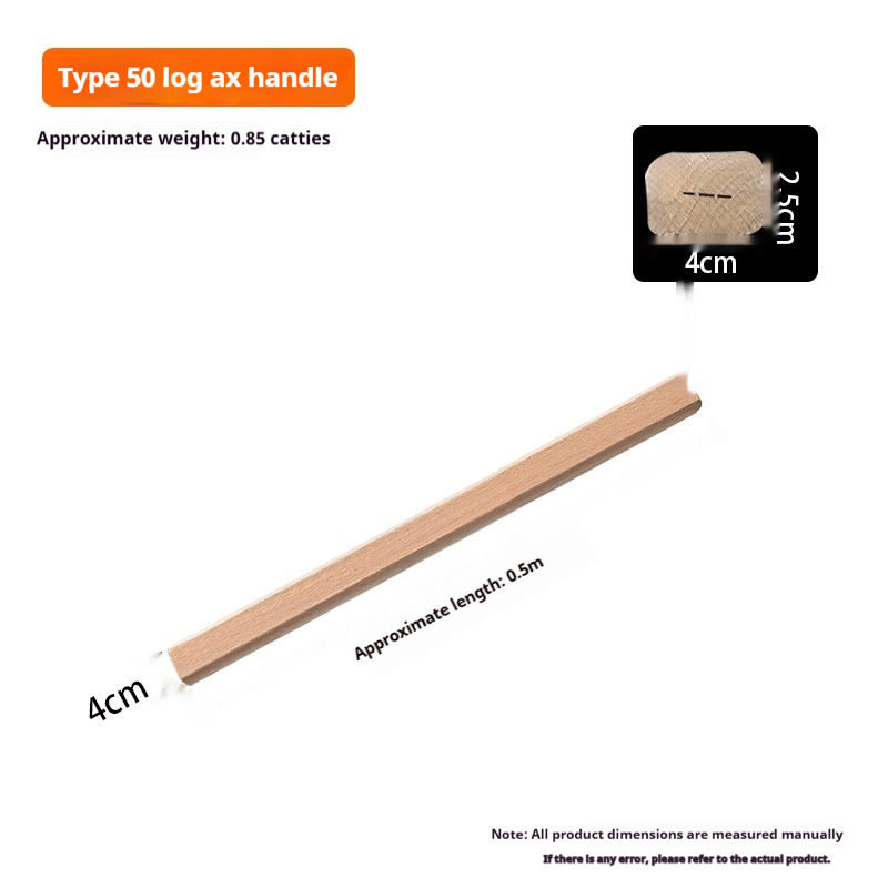 Specifications: 32cm log axe handle (square type),39.5cm log axe handle (square type),50cm log axe handle (square type),60cm log axe handle (square type),50cm hoof hoe handle, 38.5cm log sickle handle, 47cm log sickle handle