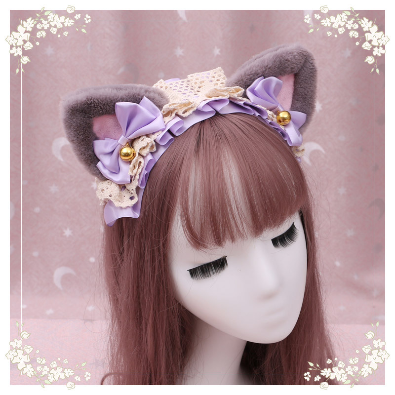 39 hair band triangle cat ear (grey powder + purple ribbon),