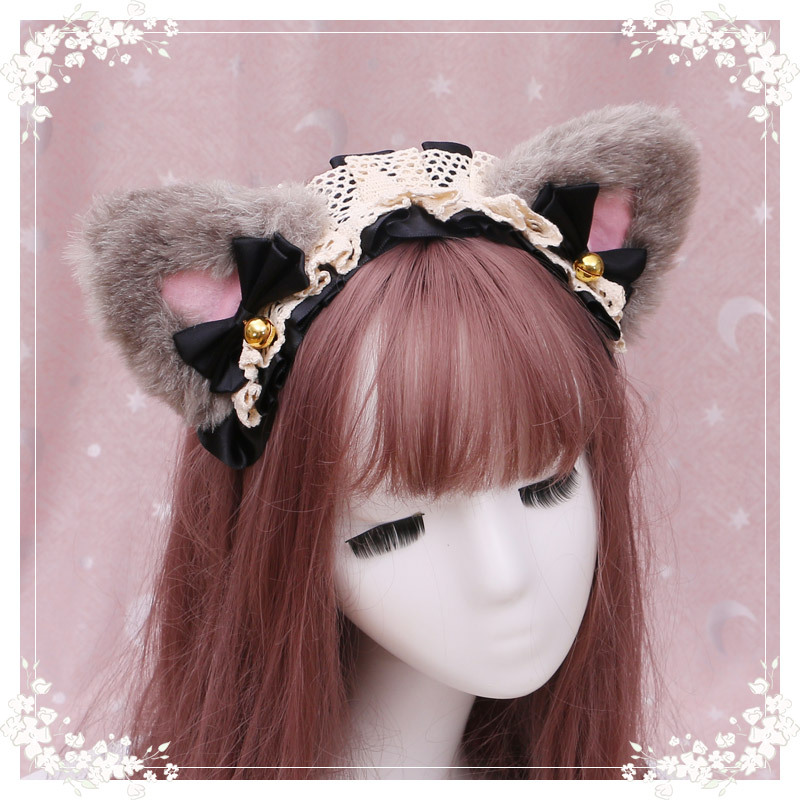 17 hair band triangle cat ear (light grey white + black ribbon),