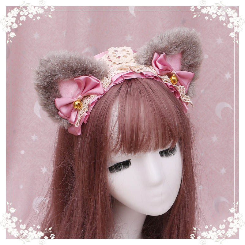 34 hair band triangle cat ear (pink + lotus root pink ribbon),