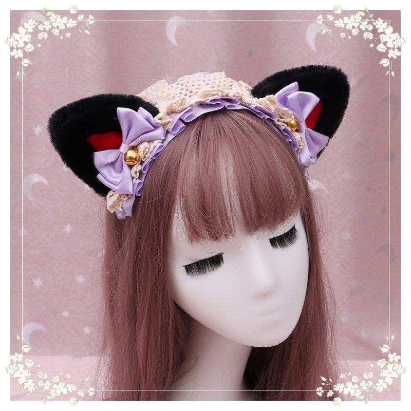 44 hair band triangle cat ear (black powder + purple ribbon),