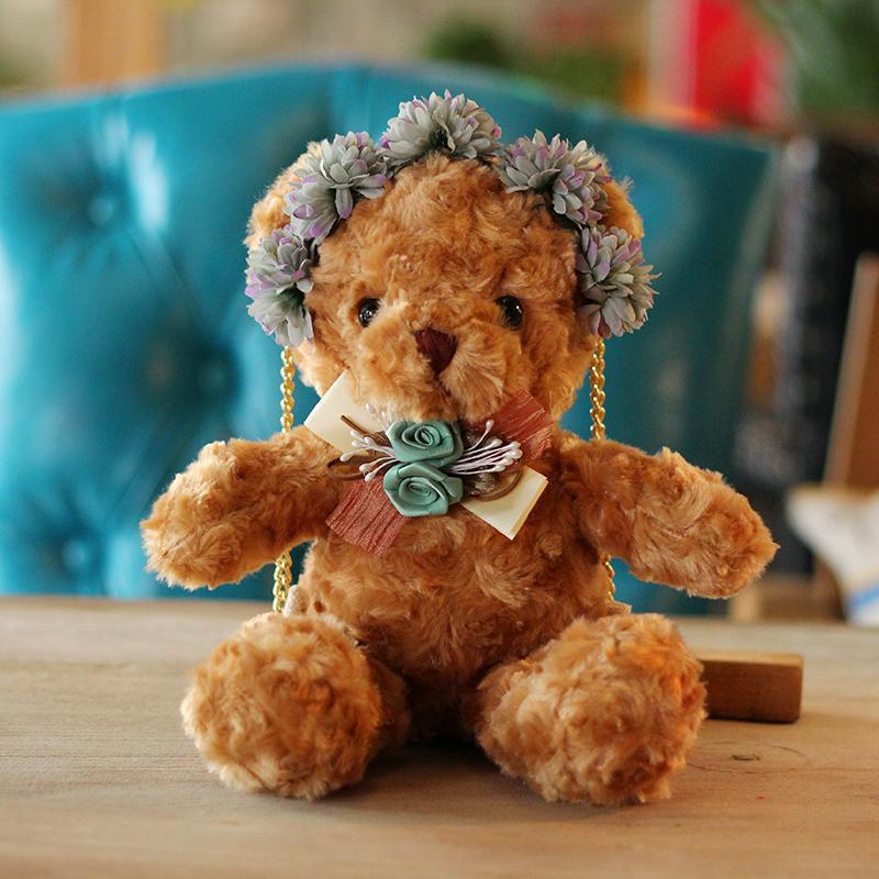 Color: White twisted flower bear [backpack + metal chain], brown twisted flower bear [backpack + metal chain]