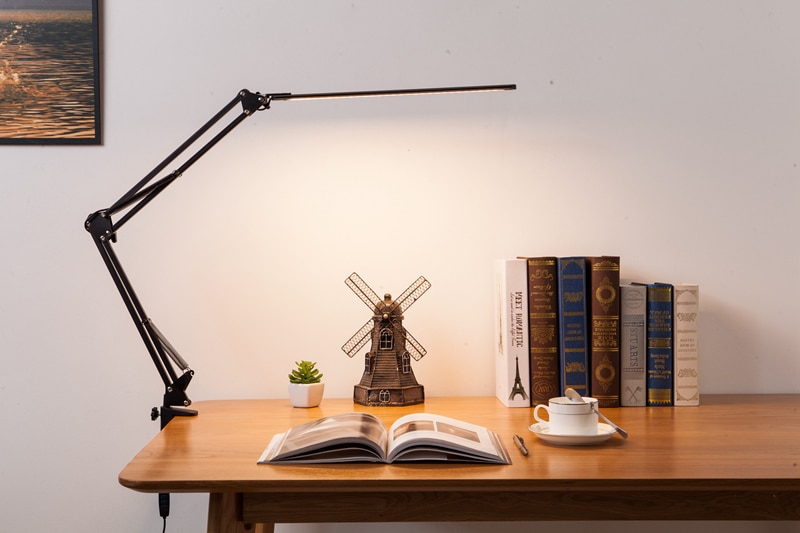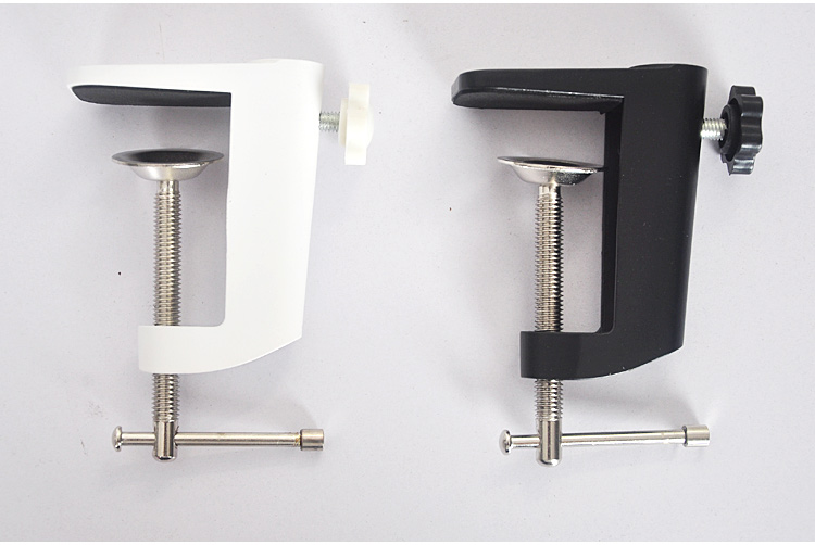 1. The durable metal clip can be fixed on any flat surface with a thickness less than 2.56 inches/6.5 cm (maximum). It saves space and can be easily connected to desks and workbenches.