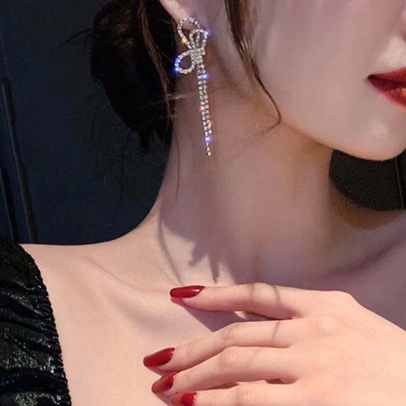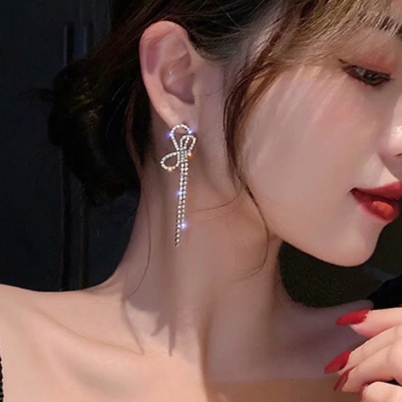 Color: rhinestone bow earrings