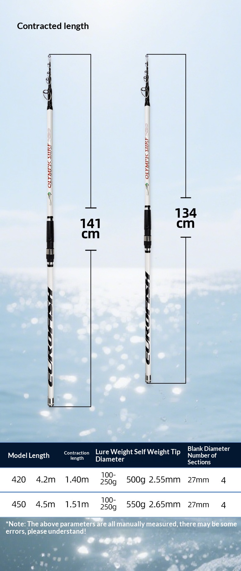 Product information:Applicable scenario: Sea fishingMaterial: CarbonLength: 4.2, 4.5Category: Fishing rod