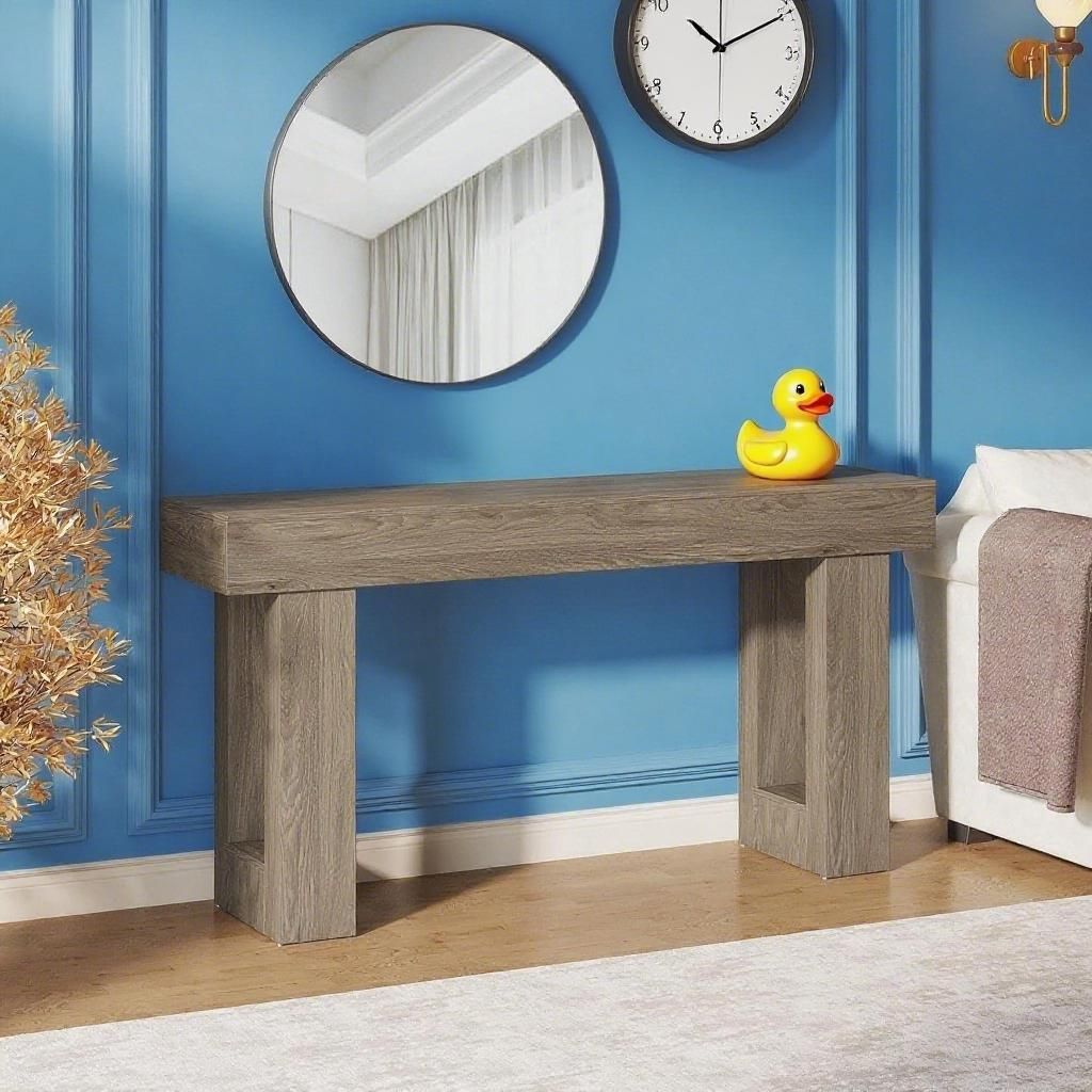 [Country-Inspired Elegance with Generous Length]: The hallway console showcases a charm endemic to farmhouse-style decor. Its impressive length of 63 inches lends abundant space for the display of decorative pieces like lamps, photo frames, or vases, creating a welcoming ambiance in any home