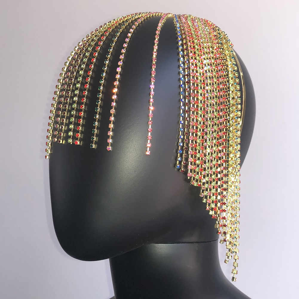 Long Fringed Luxury Rainbow Headband With Diamonds And Fake Bangs Hair Accessories