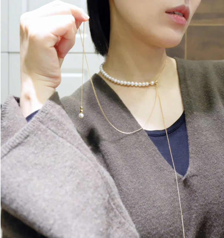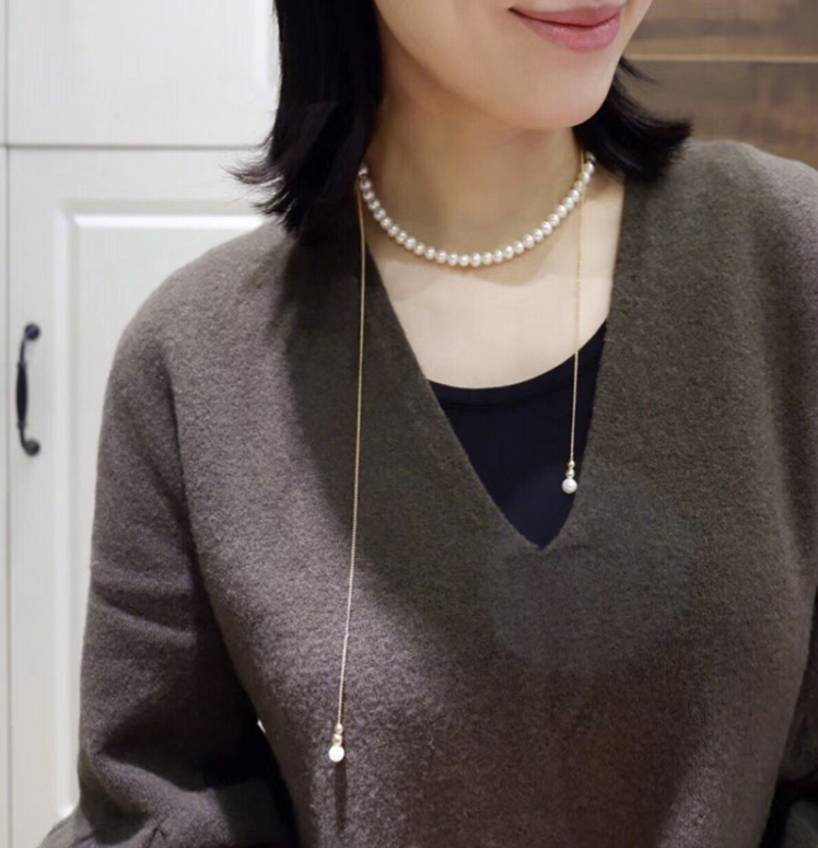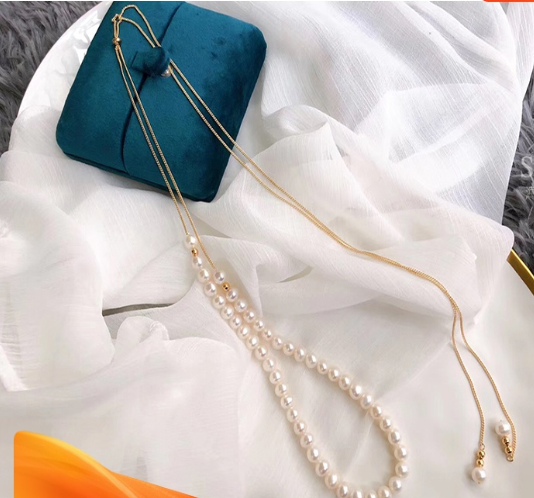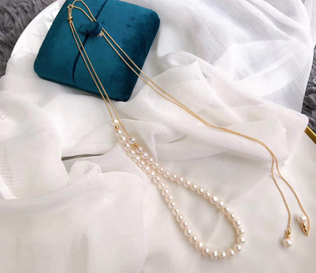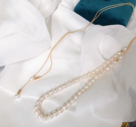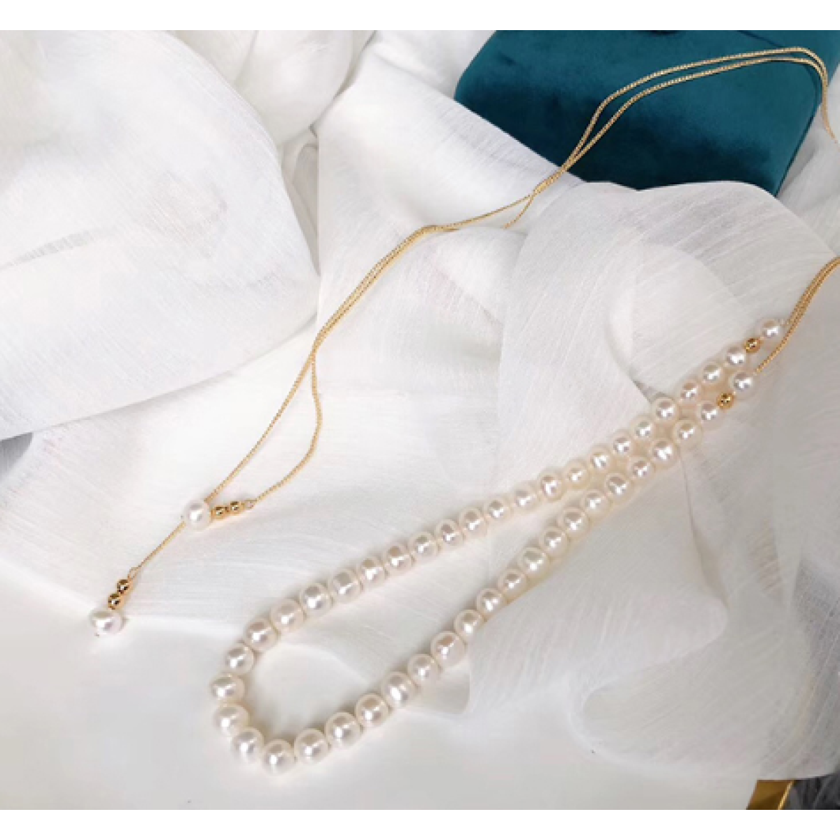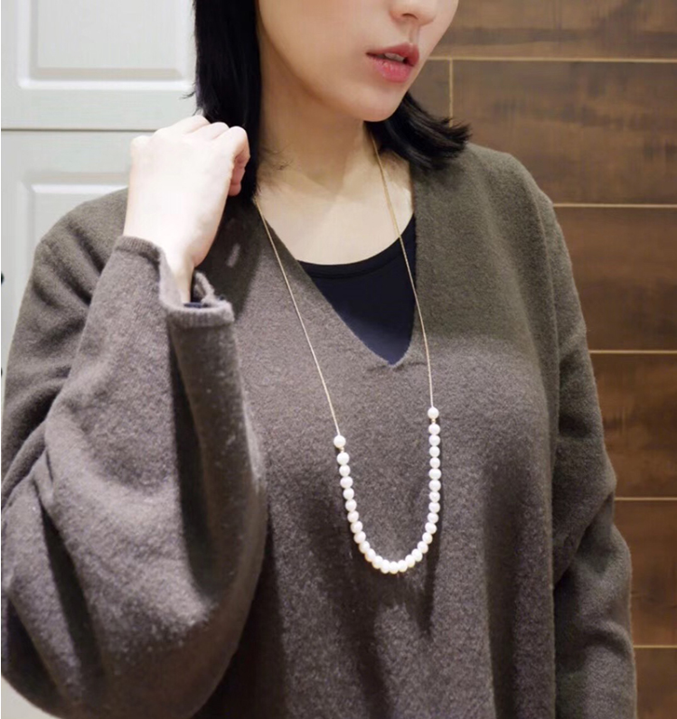 Pearl classification: freshwater pearlMosaic material: alloy mosaicStyle: sweater chainPearl diameter: 6-9mm, necklace length: 100cm