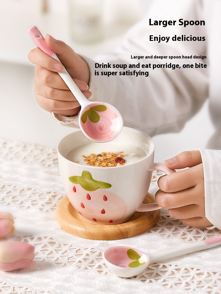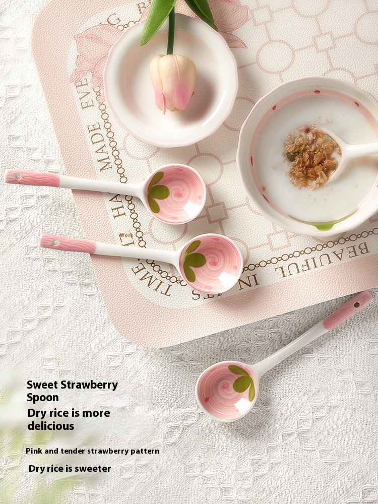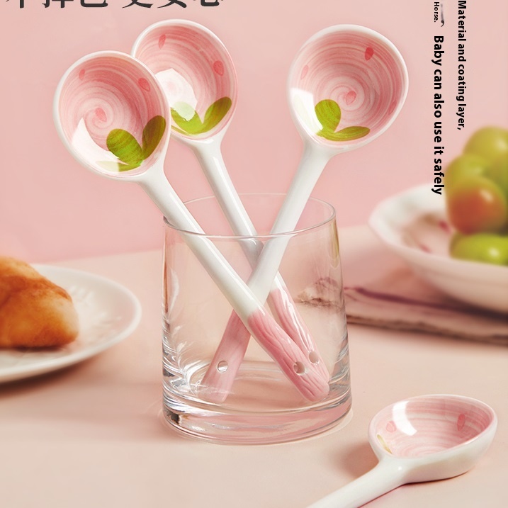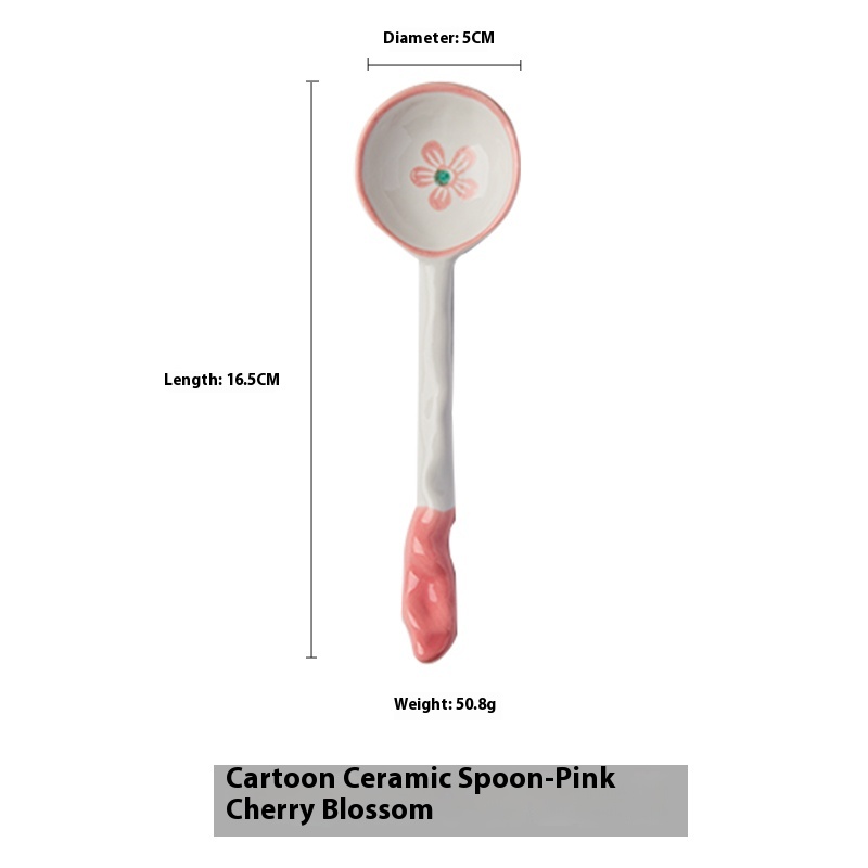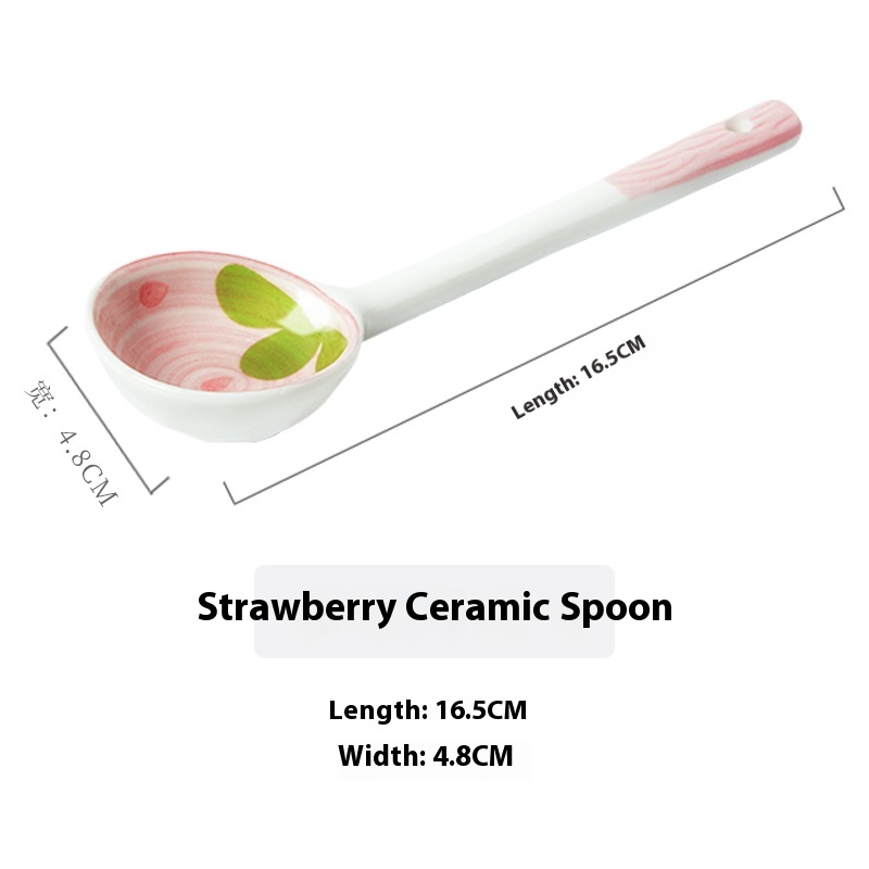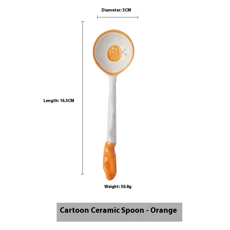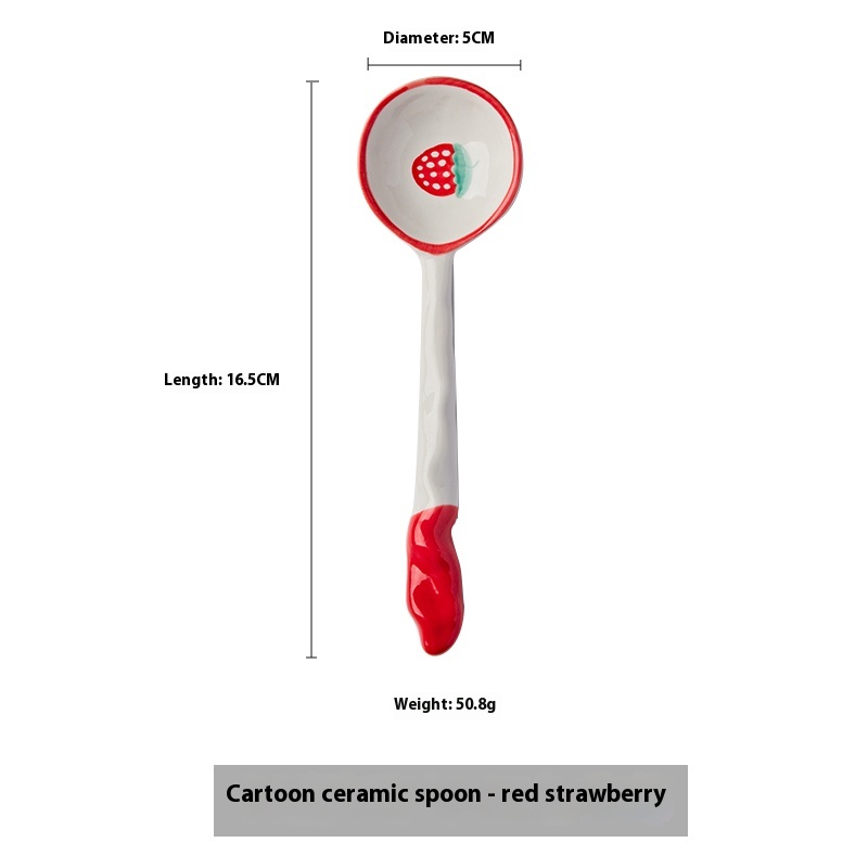 Color classification: Fruit Strawberry straight handle spoon cartoon ceramic spoon-red strawberry cartoon ceramic spoon-orange orange cartoon ceramic spoon-blue rabbit cartoon ceramic spoon-pink cherry blossom