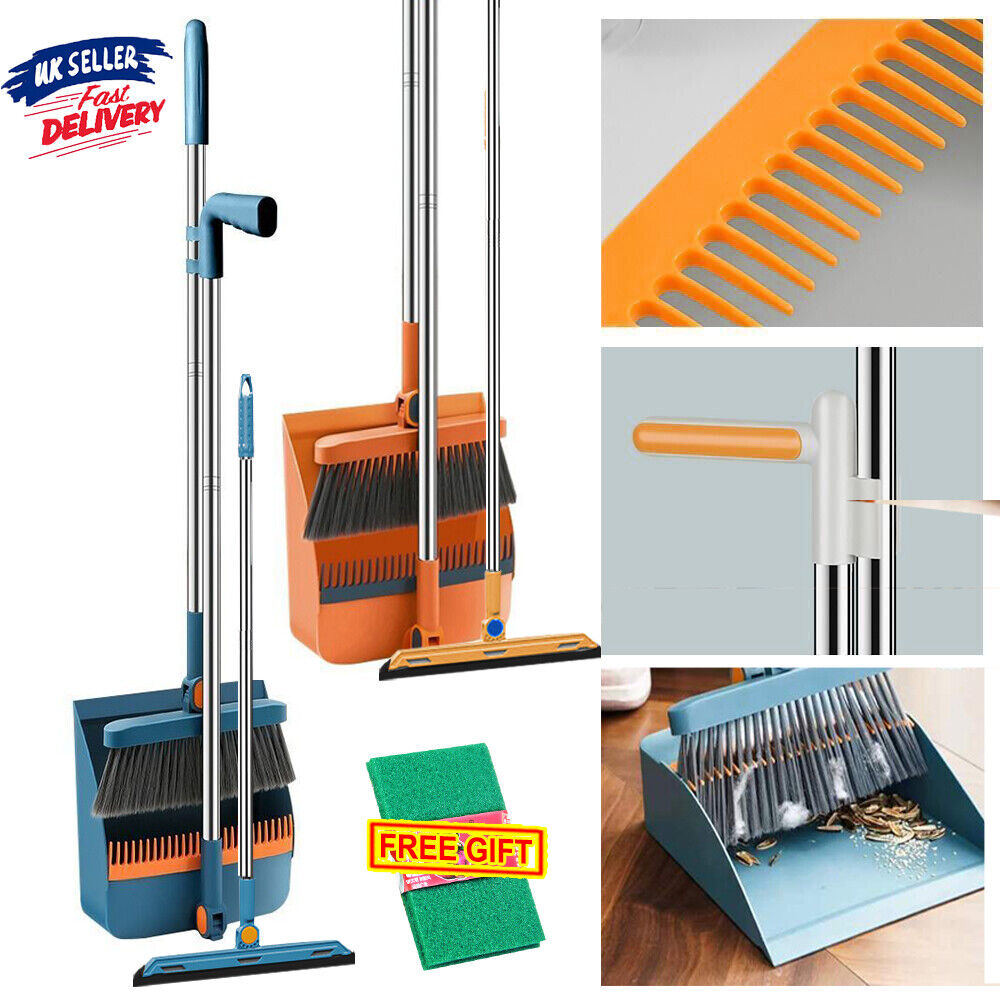 Long Handled Dustpan and Brush Set Strong Metal Handle Dust Pan & Broom Sweeper