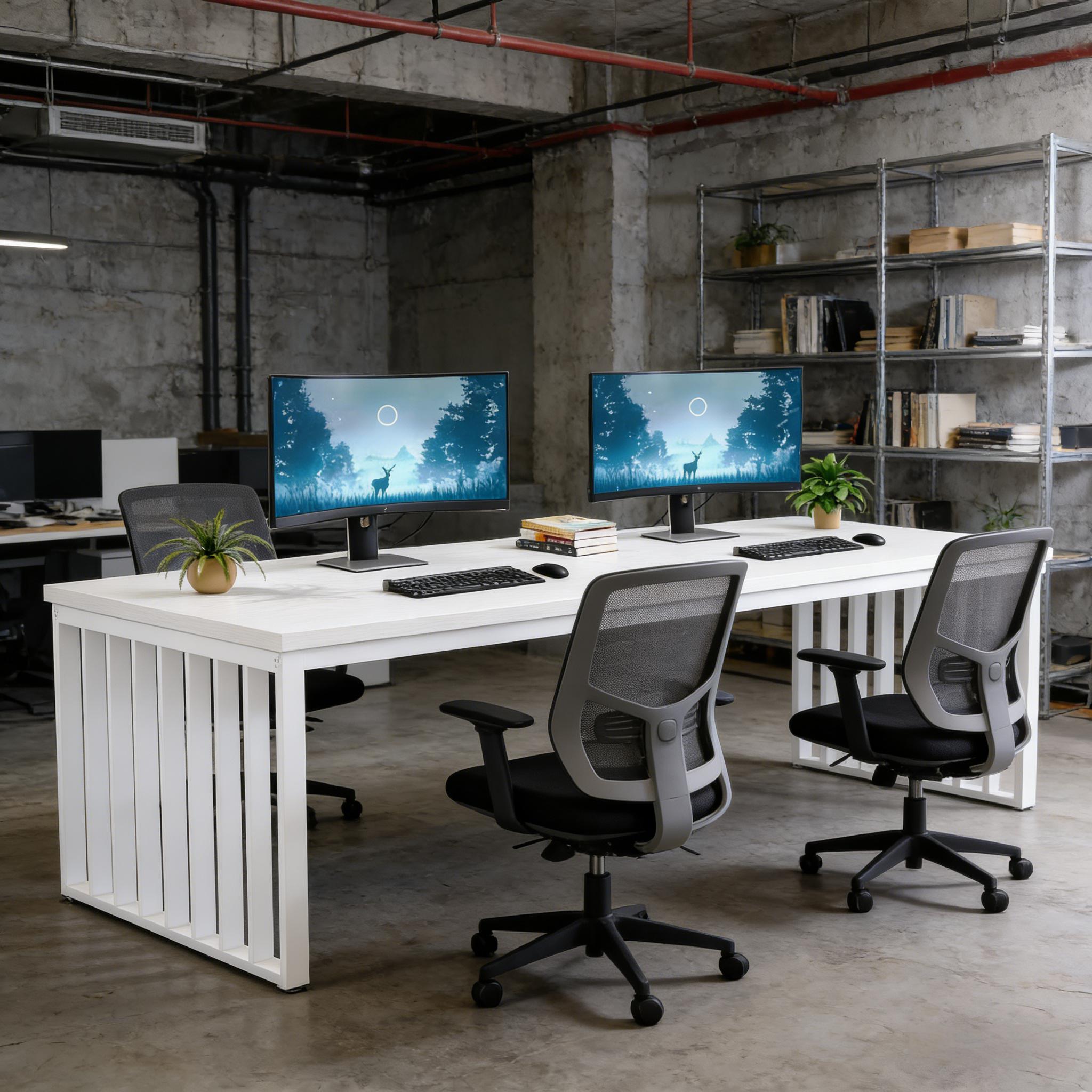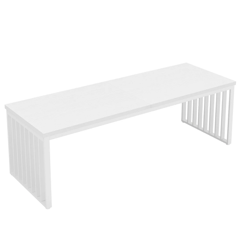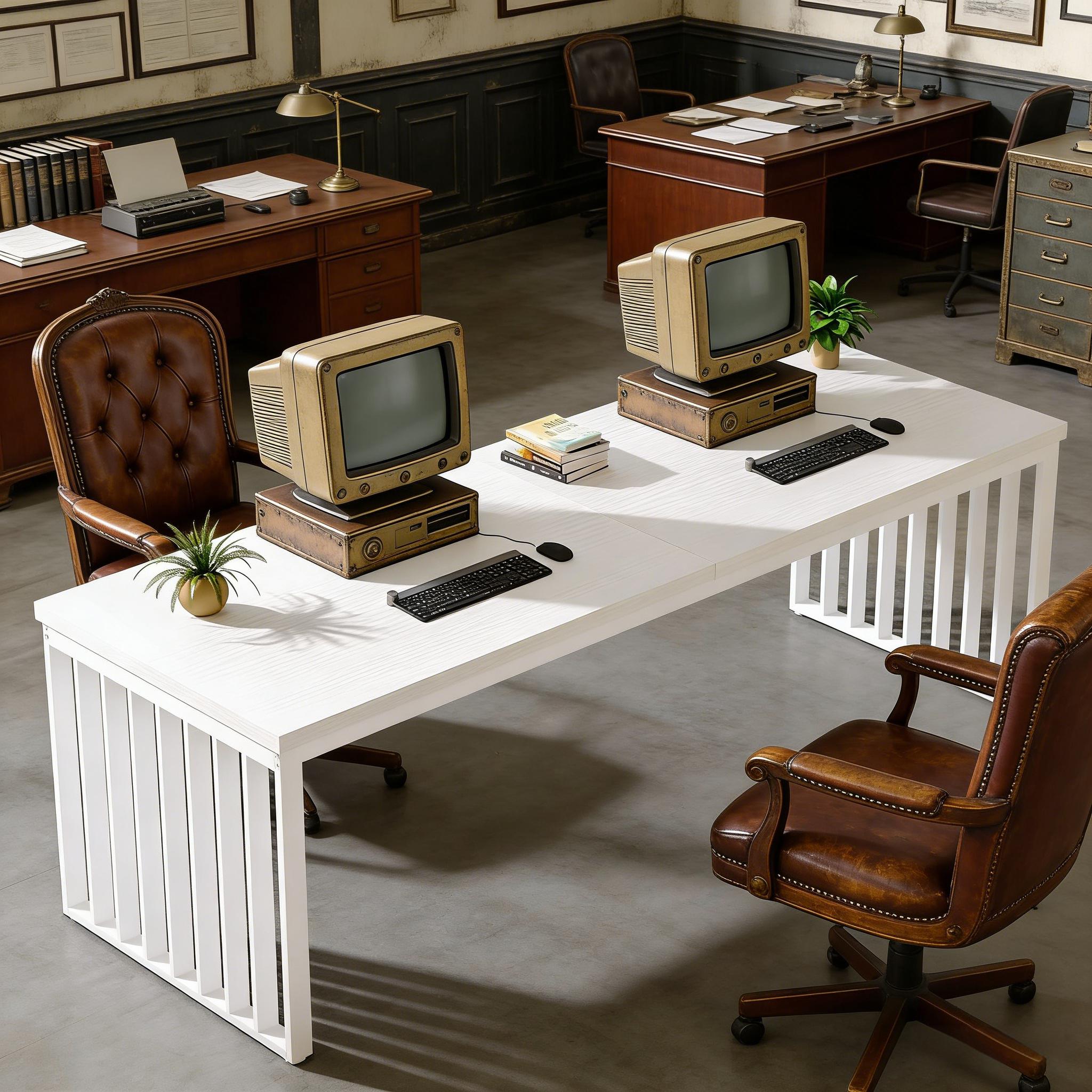 Important Reminder!!! 1) Attention: All products in our store do not support Canada self pickup ordering. Please do not create shipping labels for Canada. Our American products do not support self pickup to Canada 2)We do not ship to Alaska, Hawaii, US protectorates (e.g., Puerto Rico), P.O. boxes, or APO/FPO addresse 3)We don’t accept non-defective remorse returns Sturdy Office Desk - This desk ensures stability and durability with a 0.98-inch thick MDF board tabletop framed with heavy-duty, powder-coated iron tubing. Able to support up to 200 lbs, this desk is built to last. Expansive Workspace - This large, 78.74-inch by 27.56-inch tabletop offers plenty of space for work essentials like laptops, books, and files. Reinforced iron tubing under the tabletop enhances support and stability. Two-Person Desk - Comfortably fitting two computers, this large workstation allows two people to work side-by-side without interruptions. It's perfect for sharing a workspace with roommates or family members. Minimalist Industrial Design - With a simplistic industrial charm, this desk keeps things basic. Adjustable feet padding ensures stability and protects floors from scratches. Please note the wood grain may vary as it's a natural material. Effortless Assembly and Cleaning - This desk comes with all necessary tools and instructions for easy assembly. The surface is also easy to clean - just wipe off any dirt with a damp cloth.