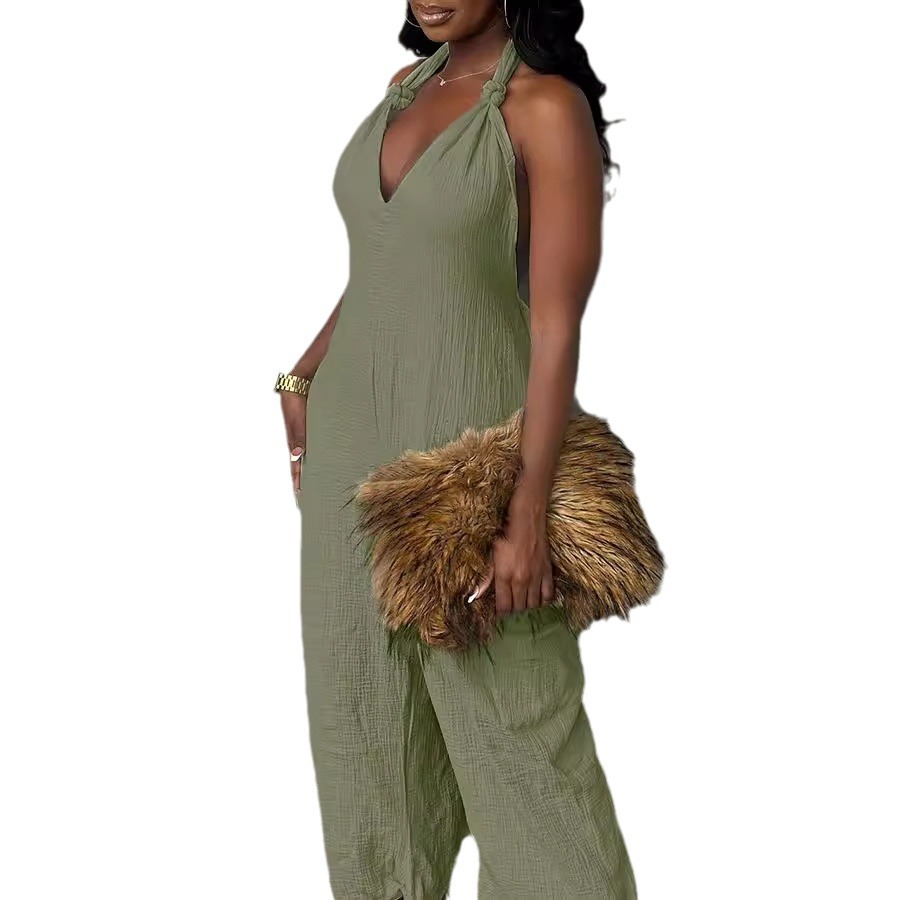 Long Skirt Linen Solid Color Jumpsuit With Belt