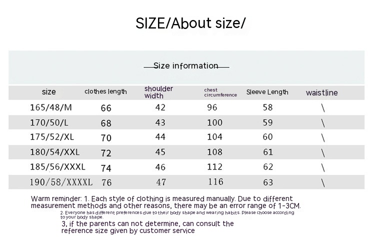 Size: within 165/M/118kg, 170/L/59.00 kg-69.00 kg, 175/XL/69.00 kg-79.00 kg, 180/XXL/79.00 kg-89.00 kg, 185/3XL/89.00 kg-94.00 kg, 190/4XL/94.00 kg-99.00 kg