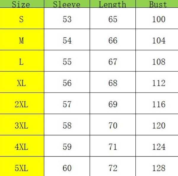 Size:S,M,L,XL,2XL,3XL,4XL,5XL unit:cm
