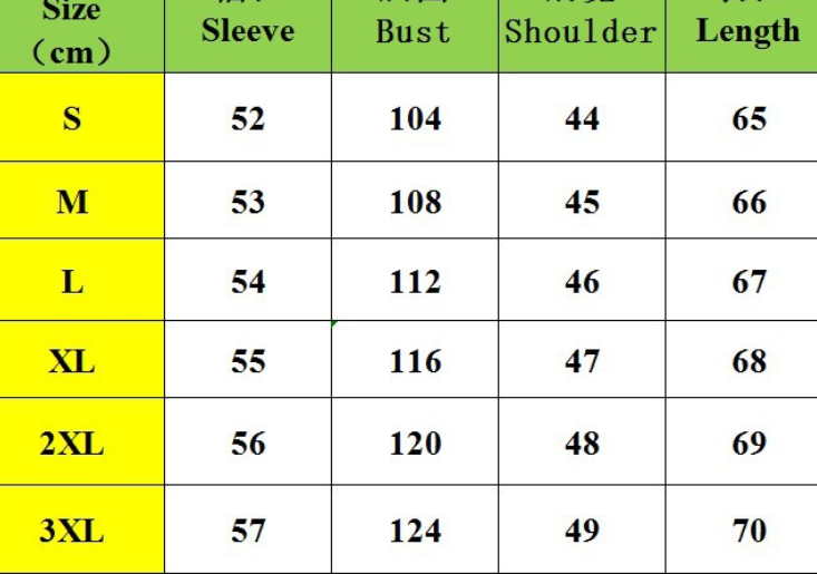Size: S, M, L, XL, 2XL, 3XL unit: cm