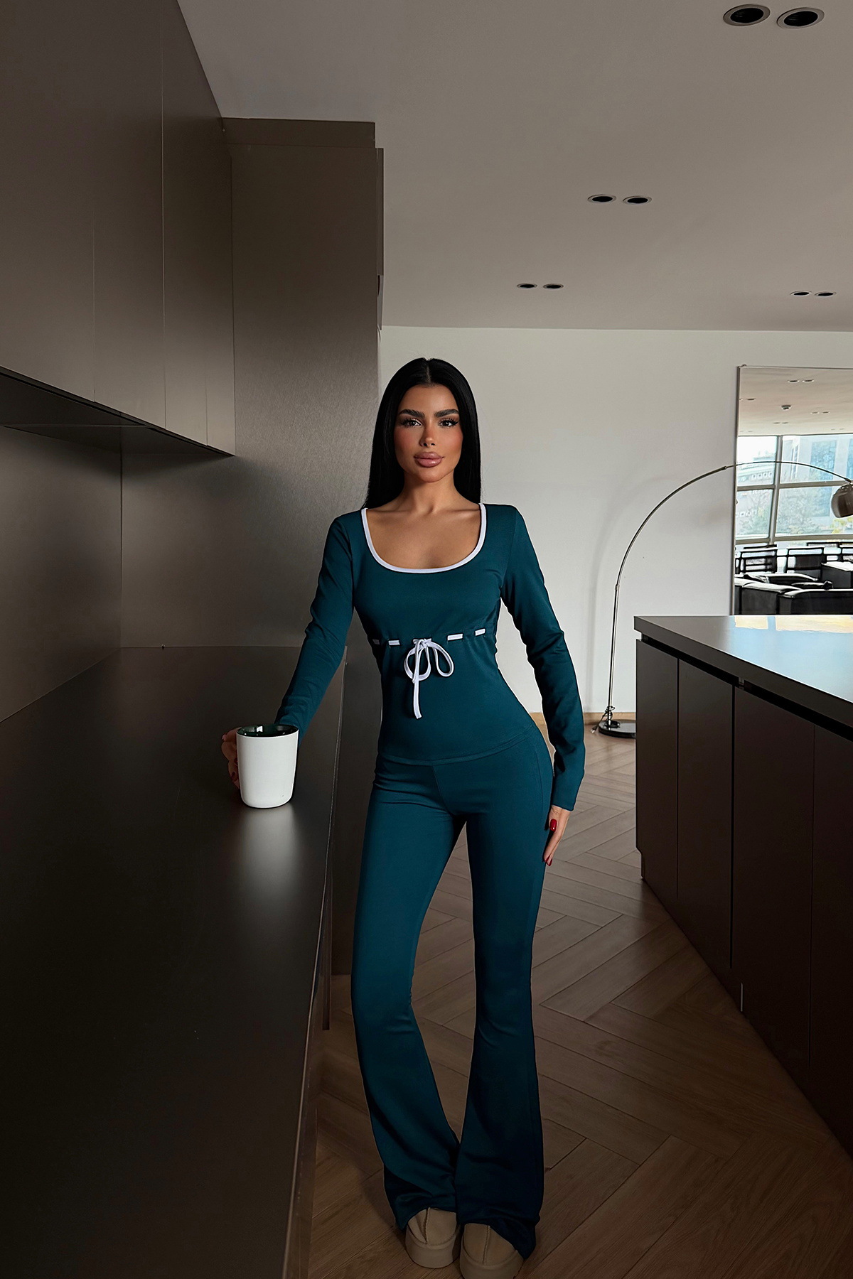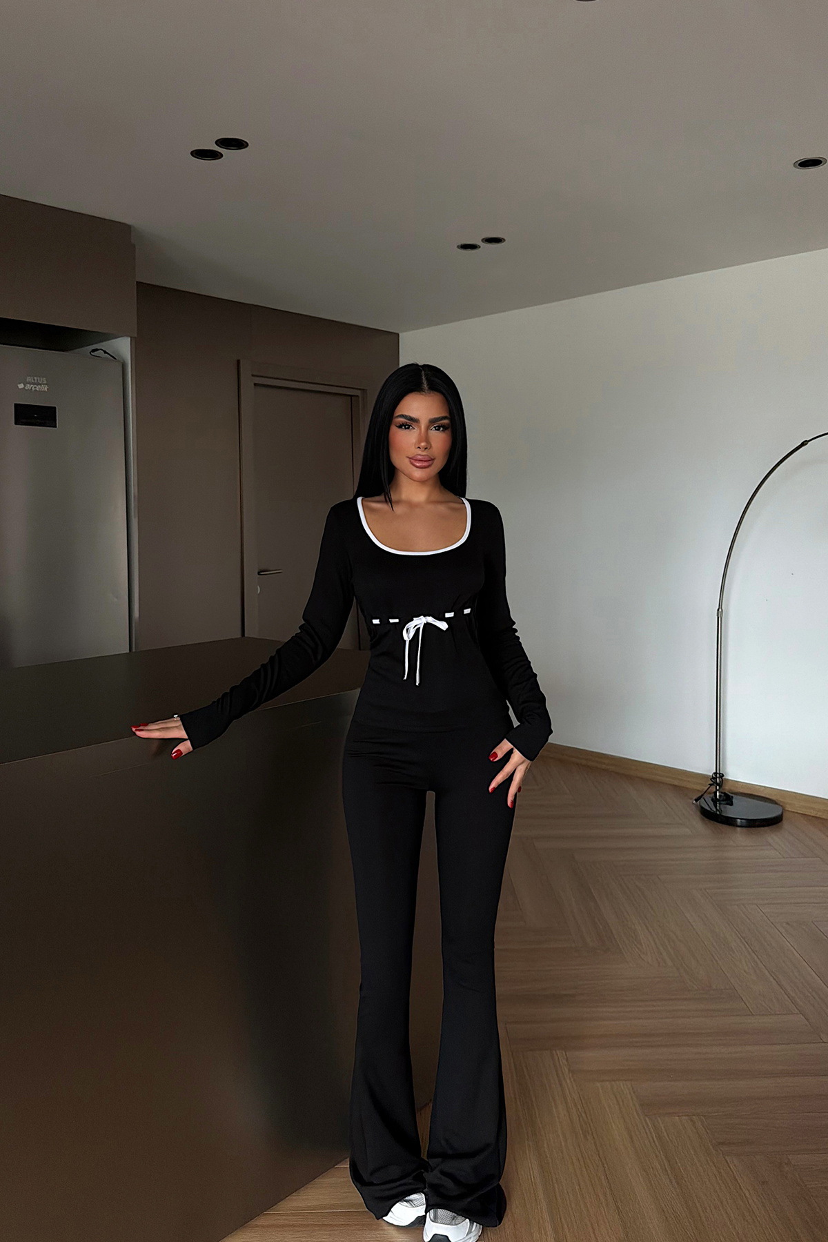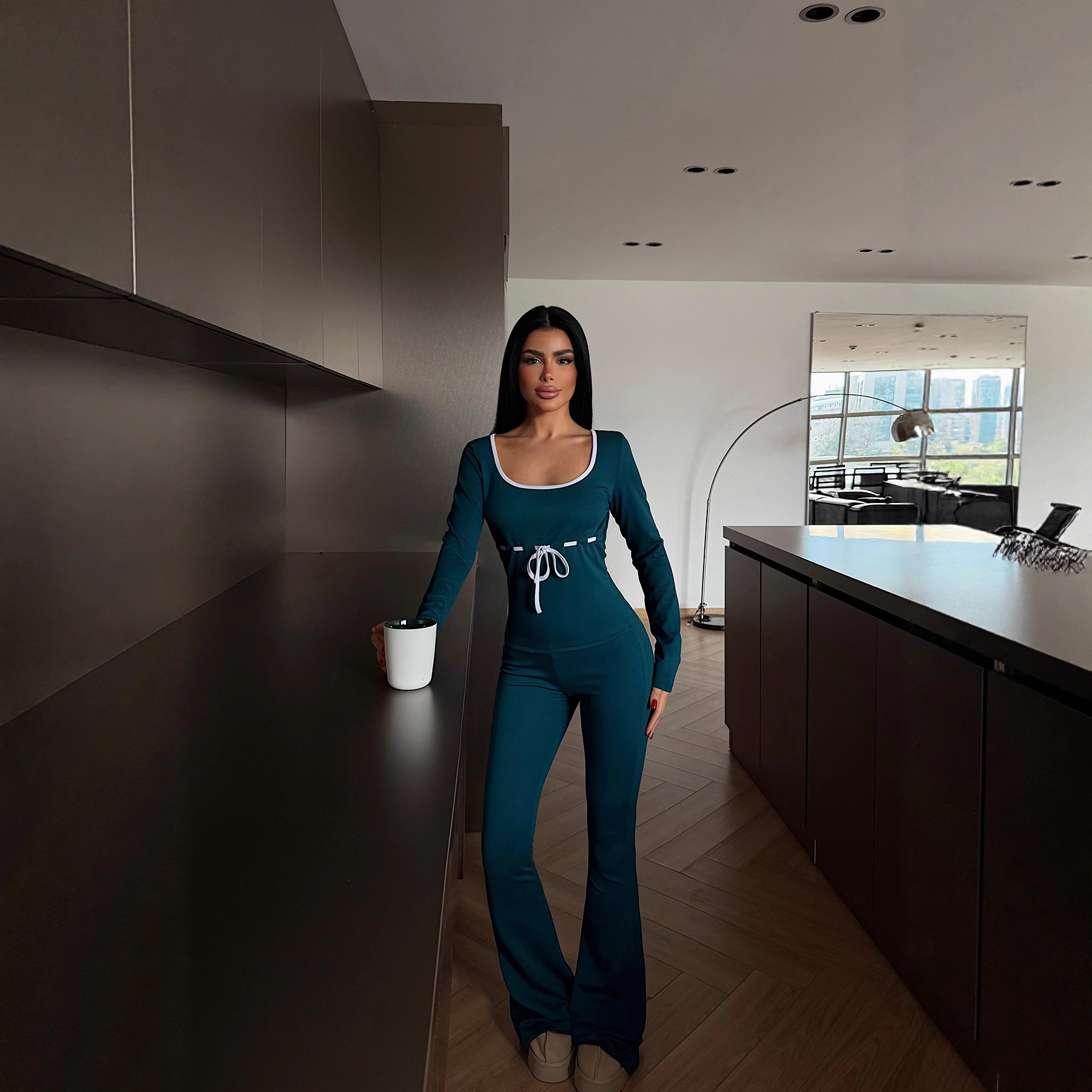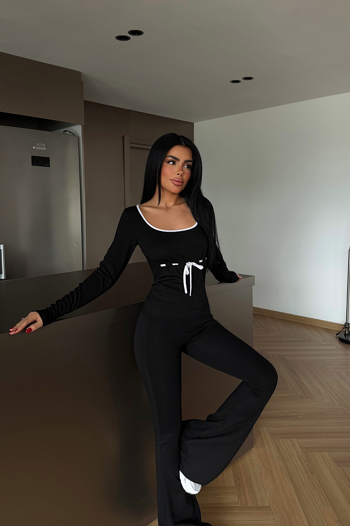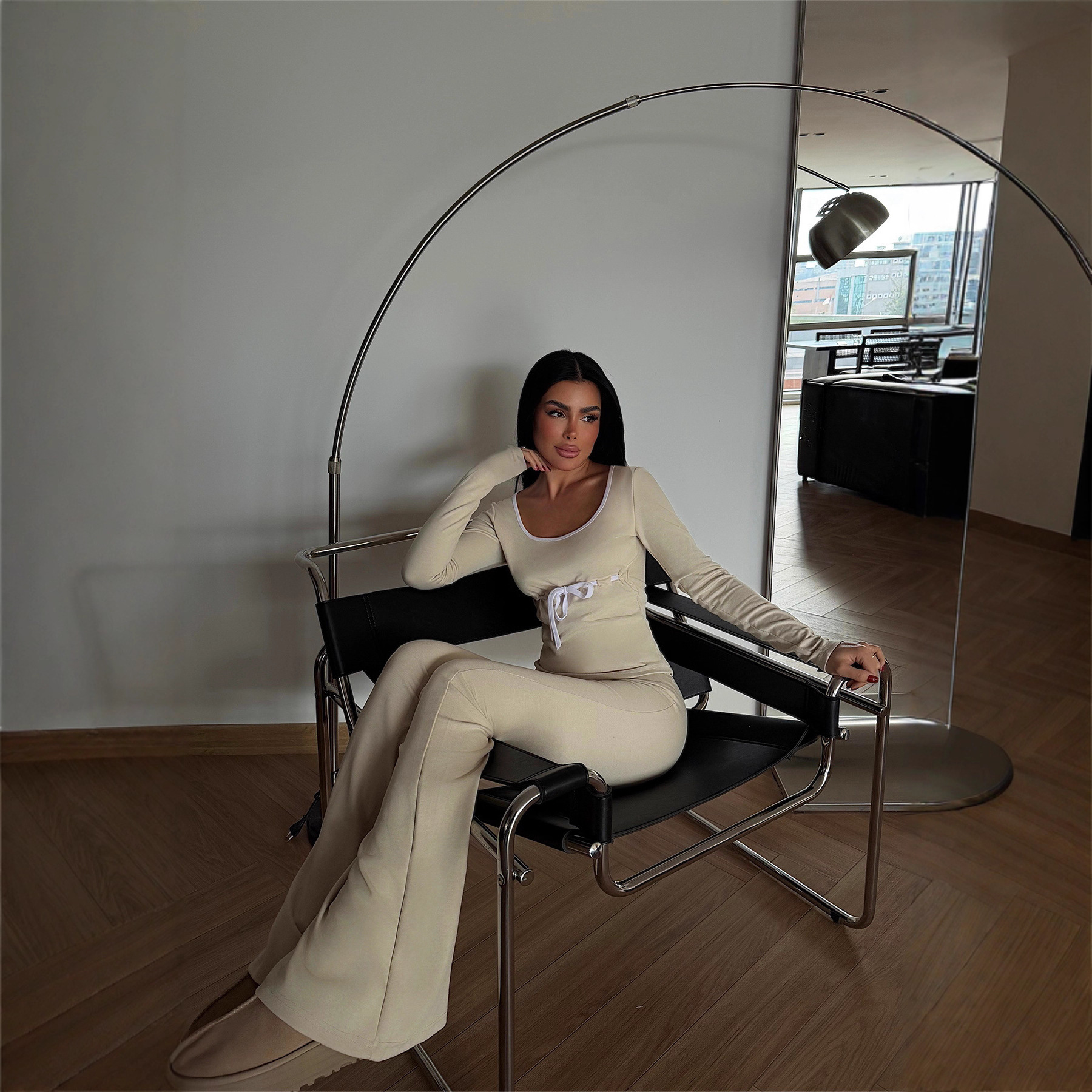 Long-sleeve Drawstring Top And Floor-length Pants Two-piece Set