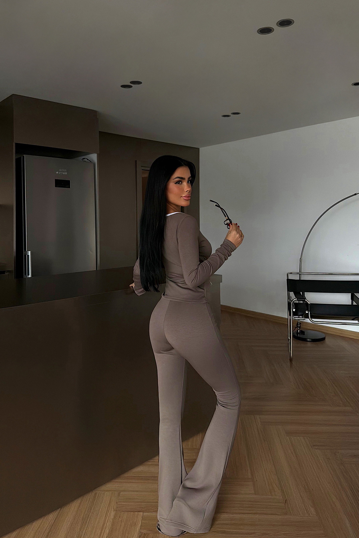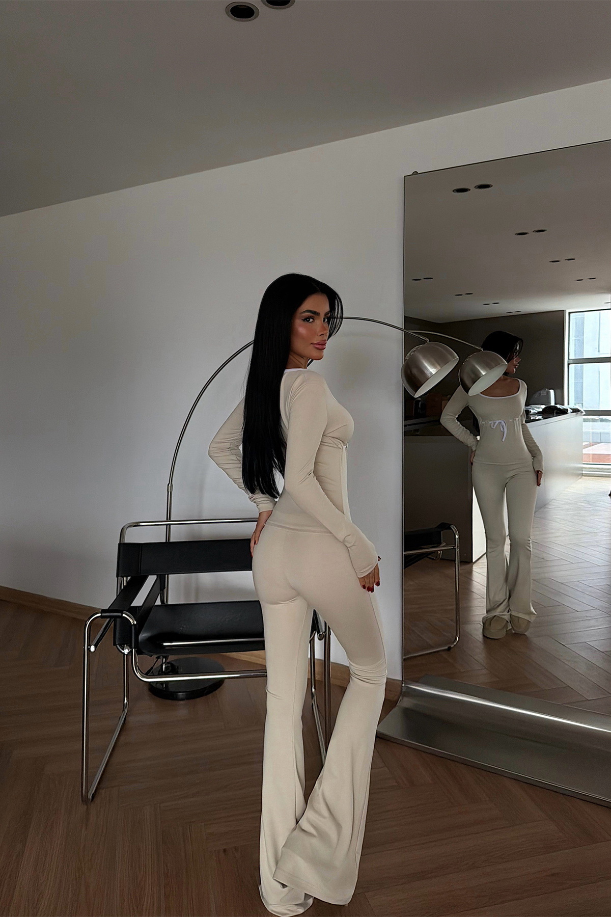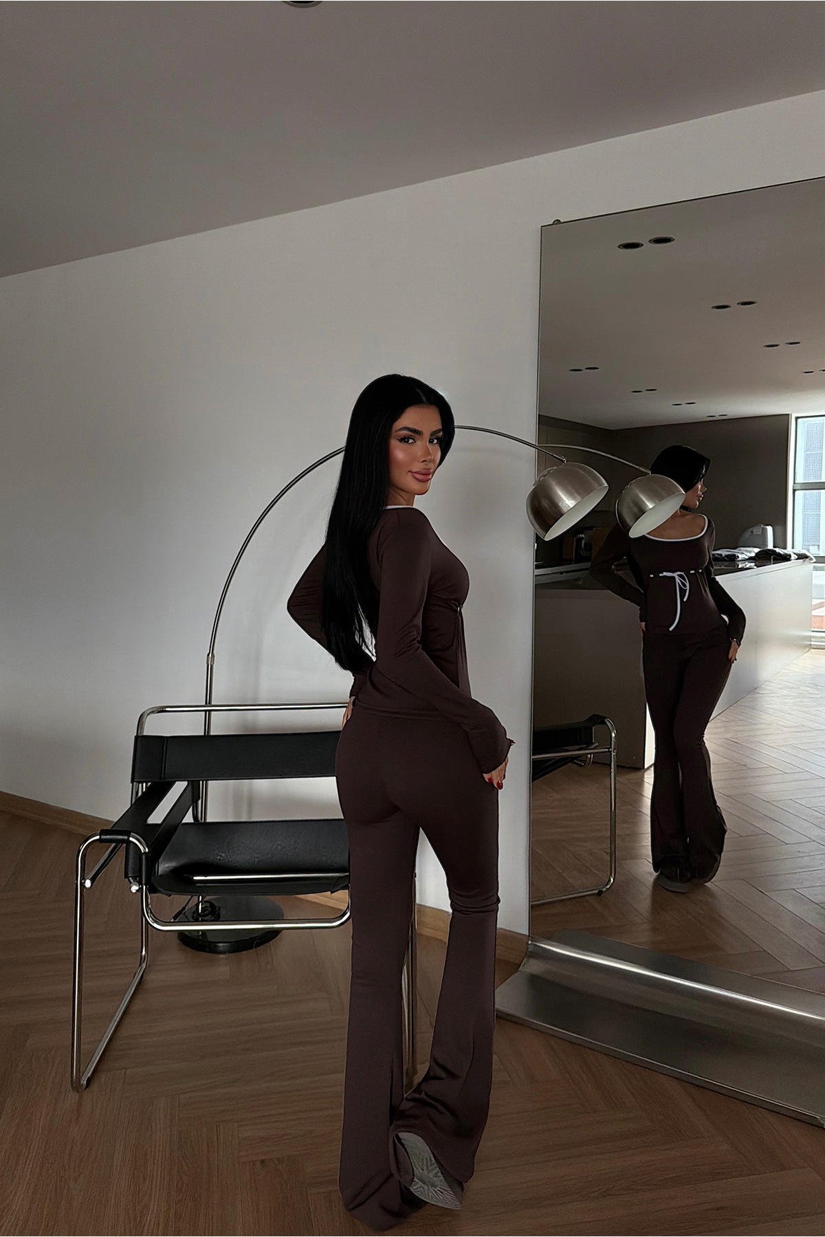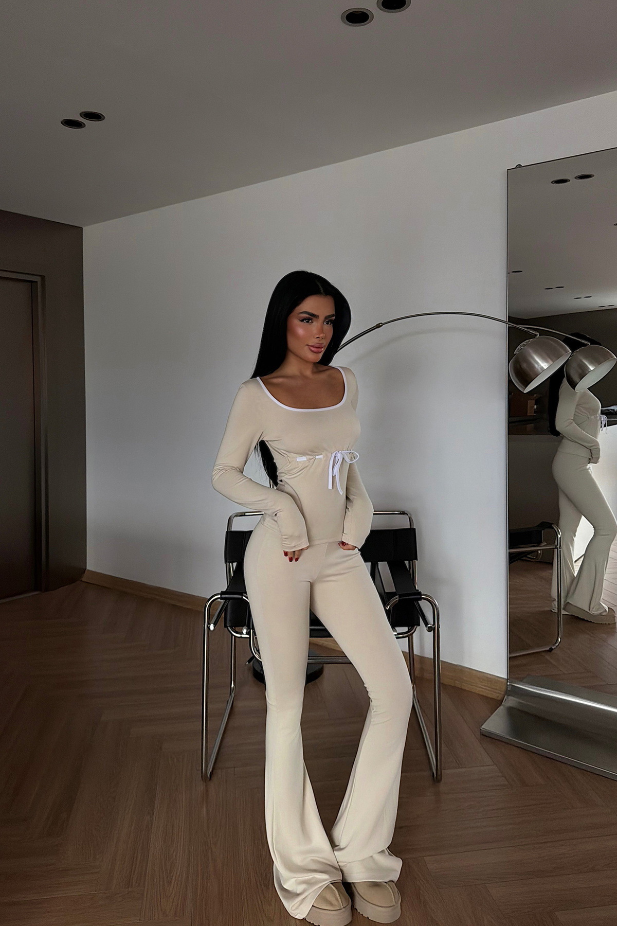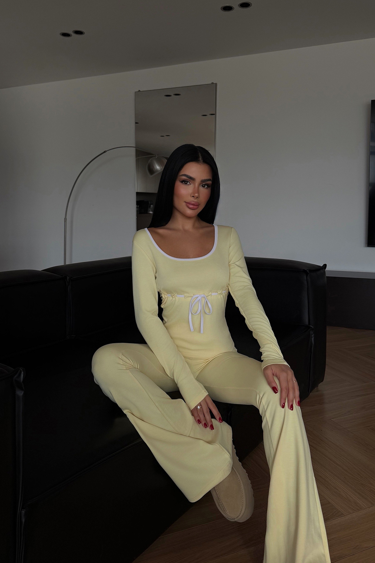 Long-sleeve Drawstring Top And Floor-length Pants Two-piece Set