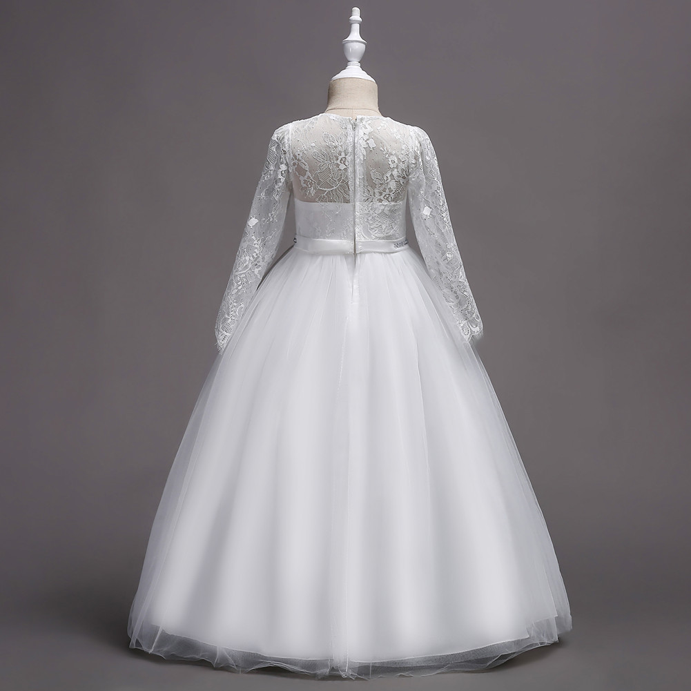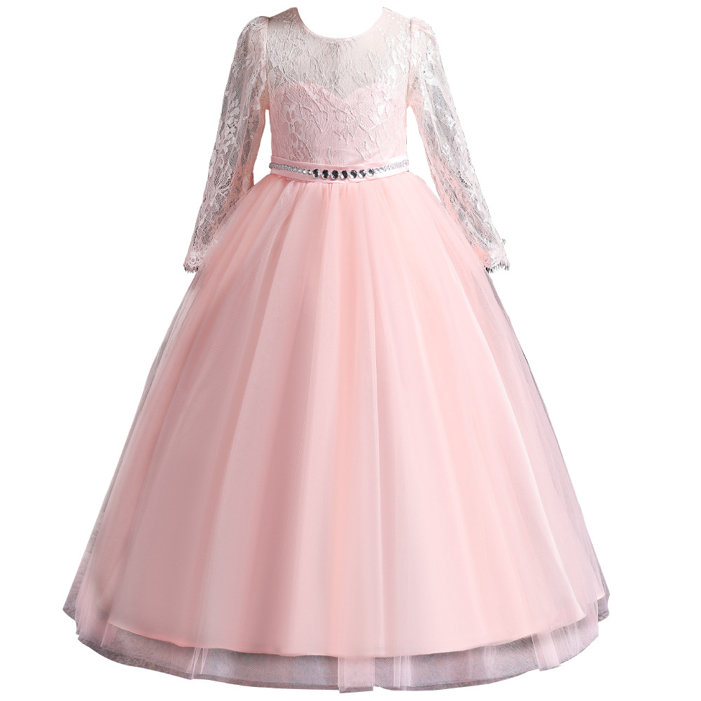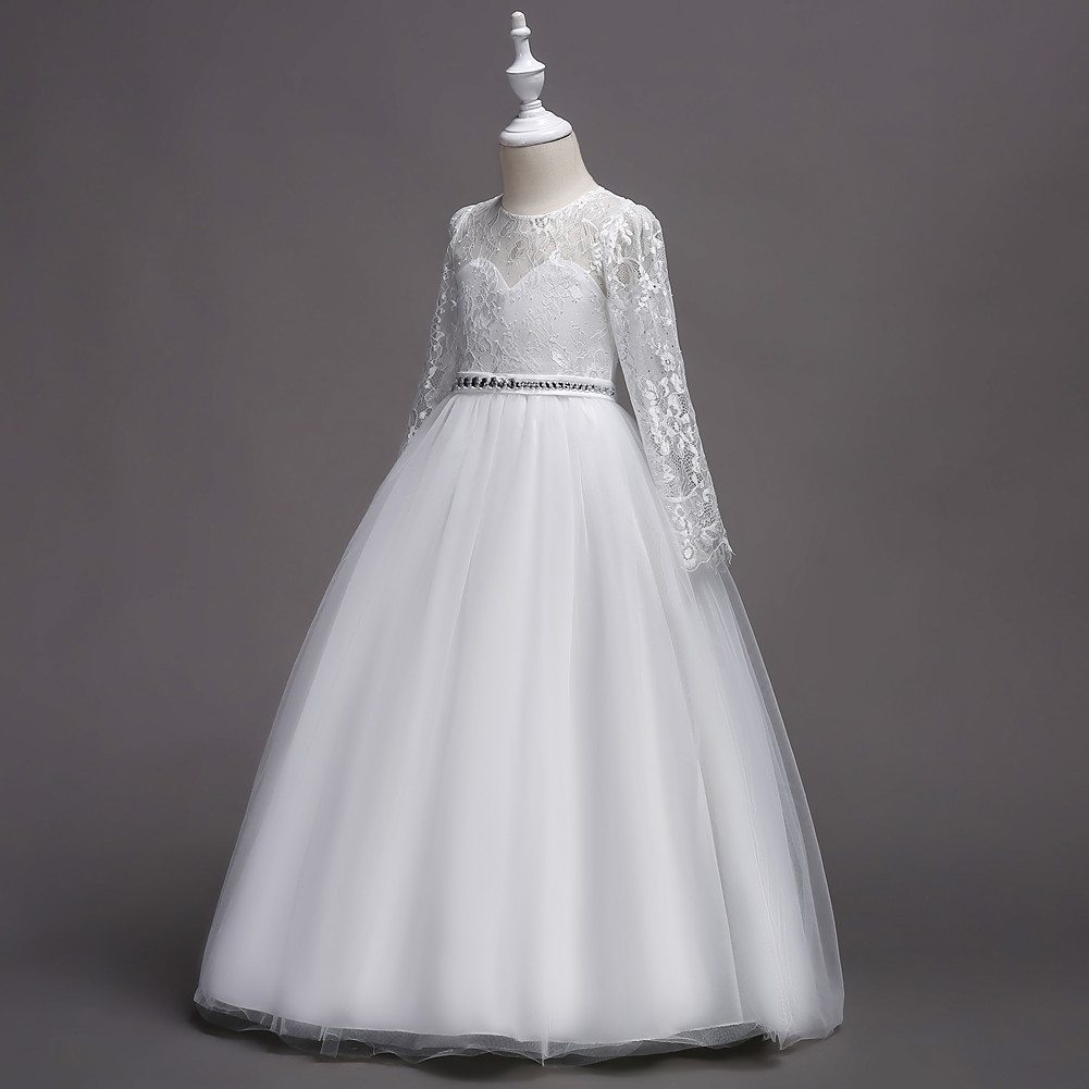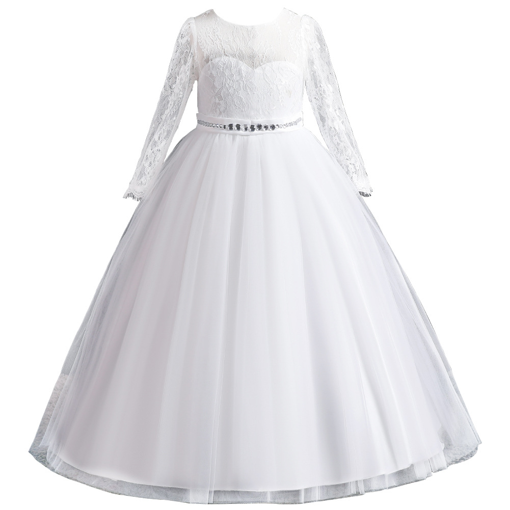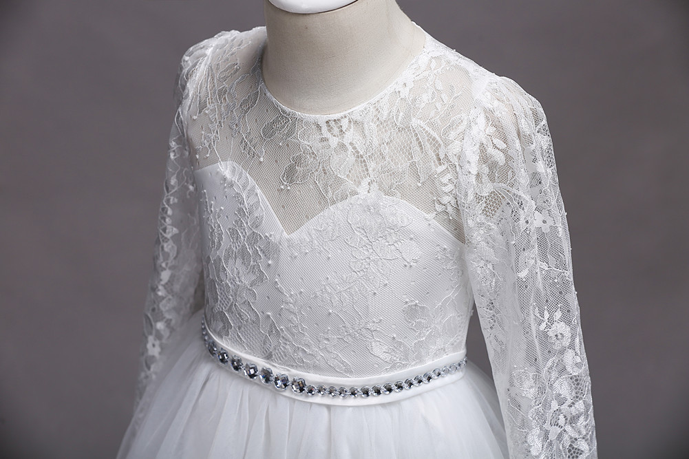 Long Sleeve Girl's Pettiskirt Lace Diamond Wedding Performance Dress