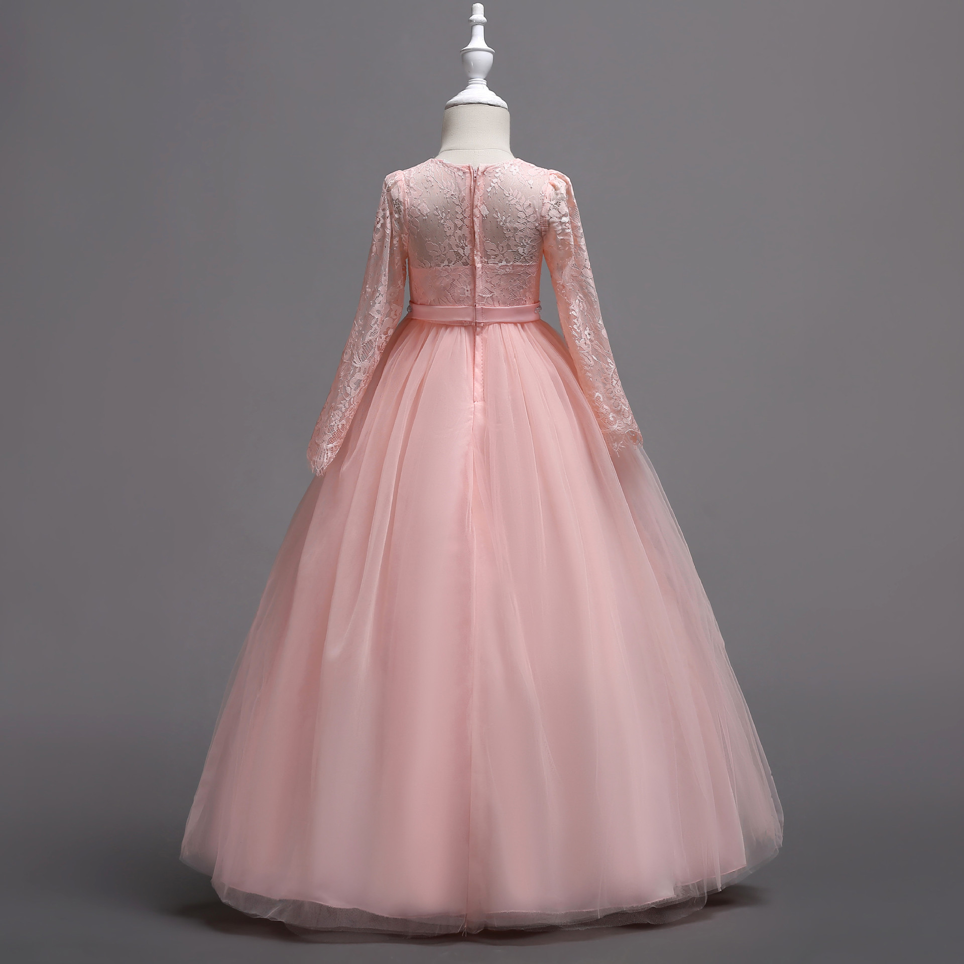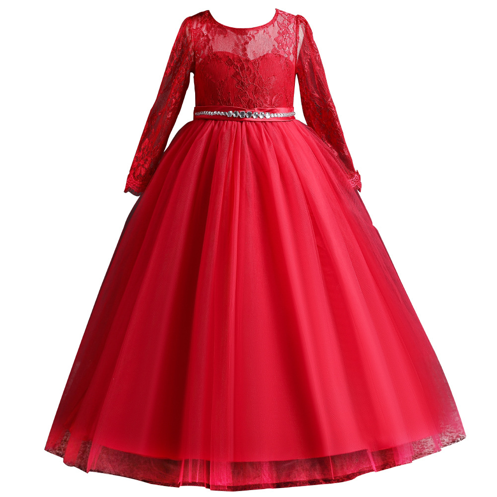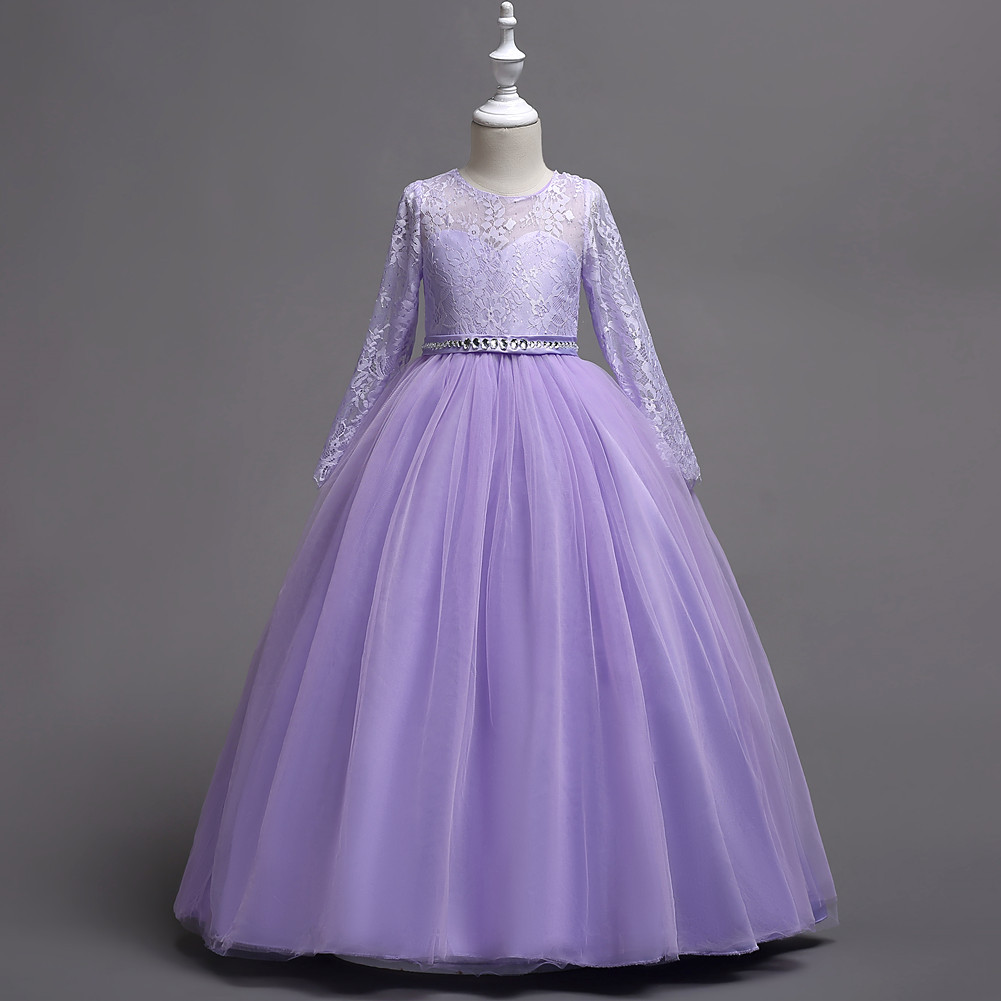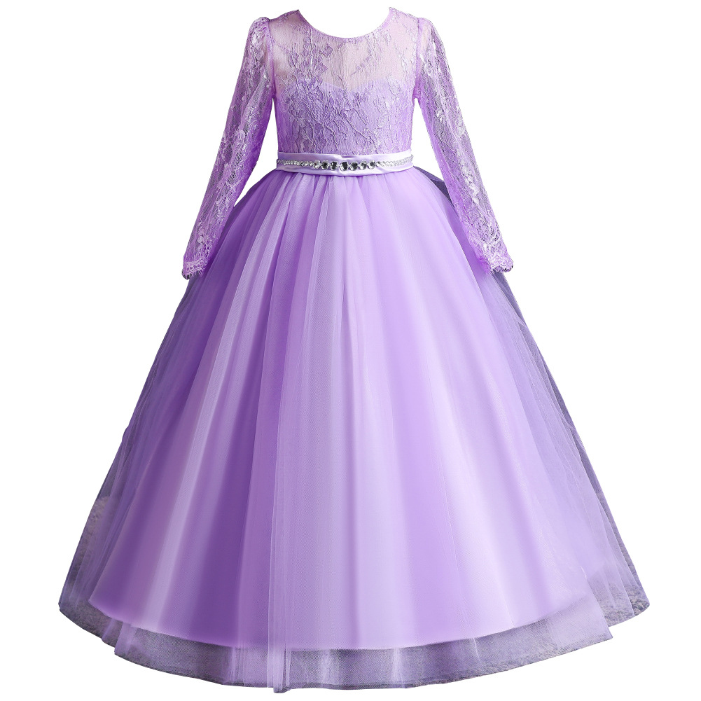 Long Sleeve Girl's Pettiskirt Lace Diamond Wedding Performance Dress