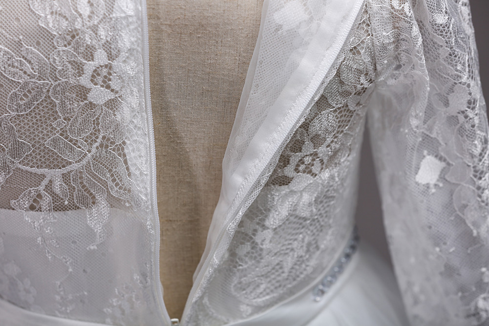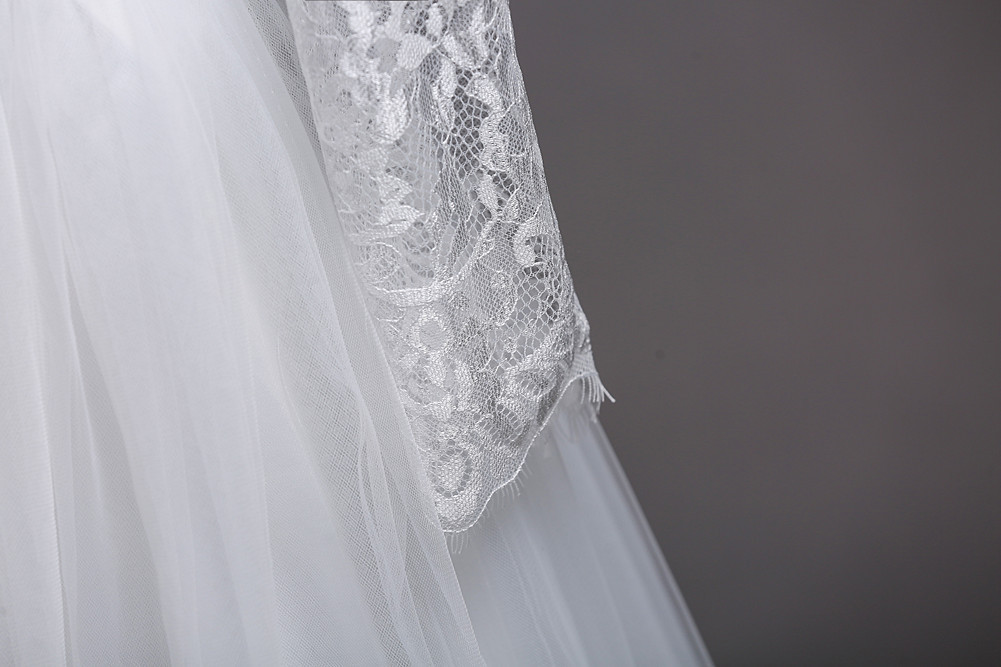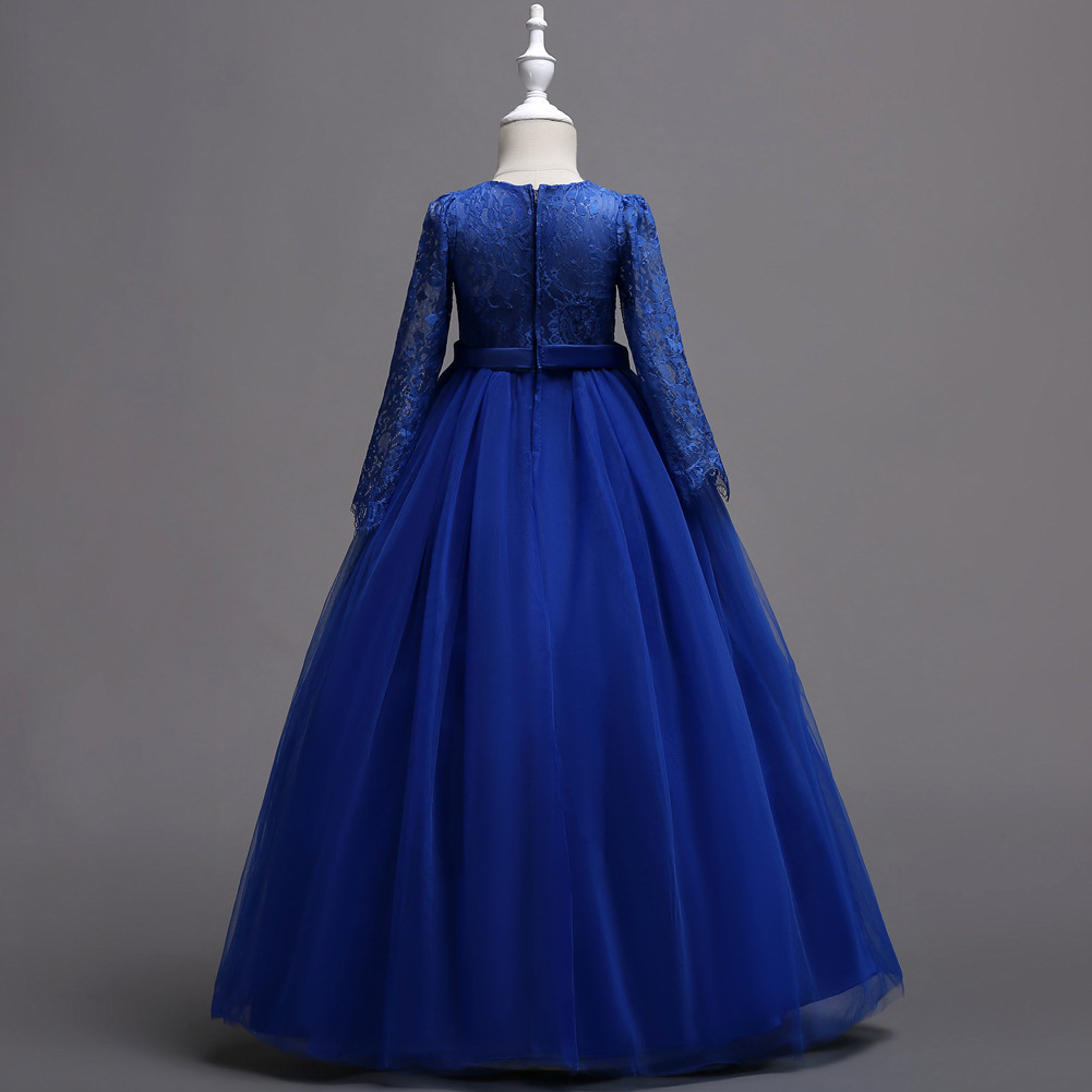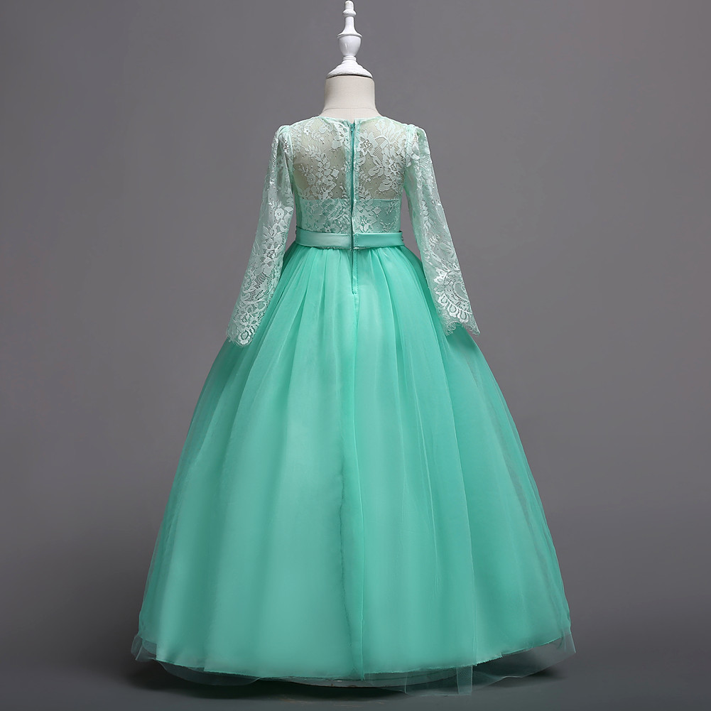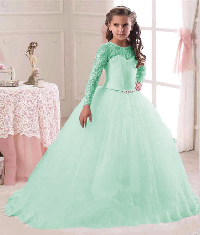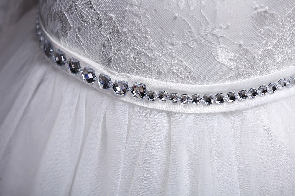 Long Sleeve Girl's Pettiskirt Lace Diamond Wedding Performance Dress