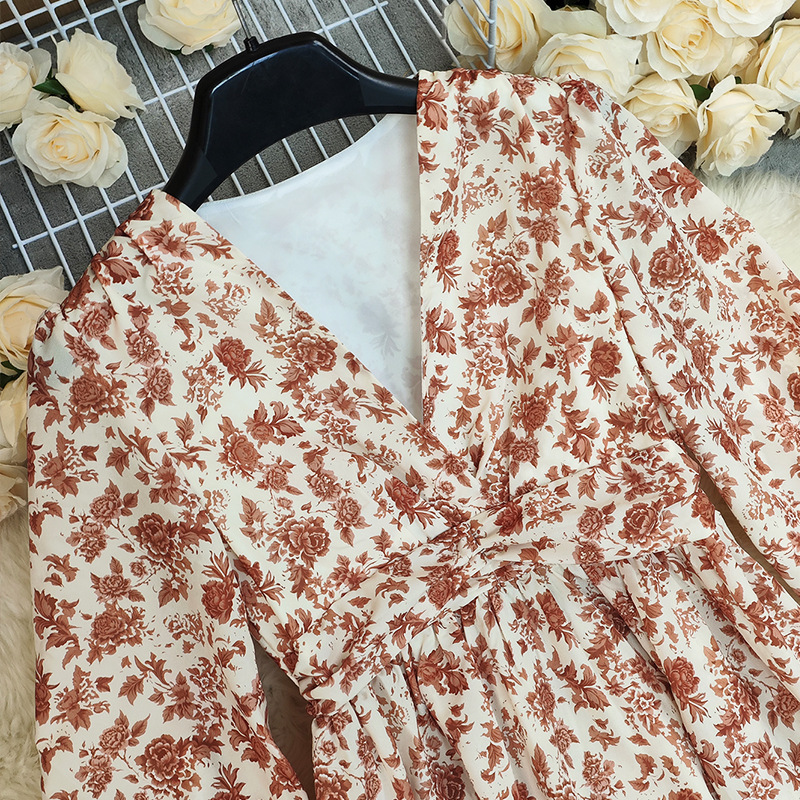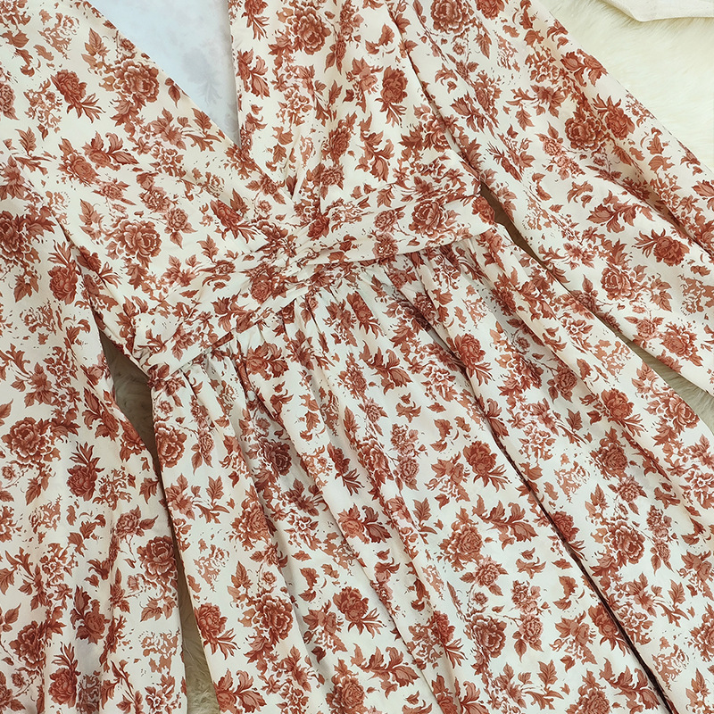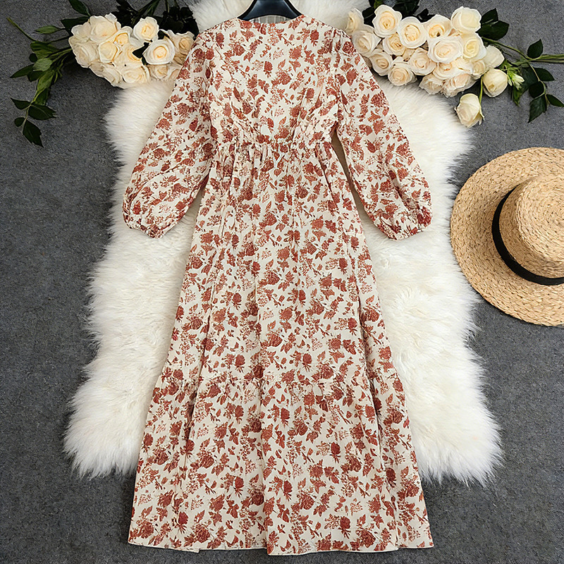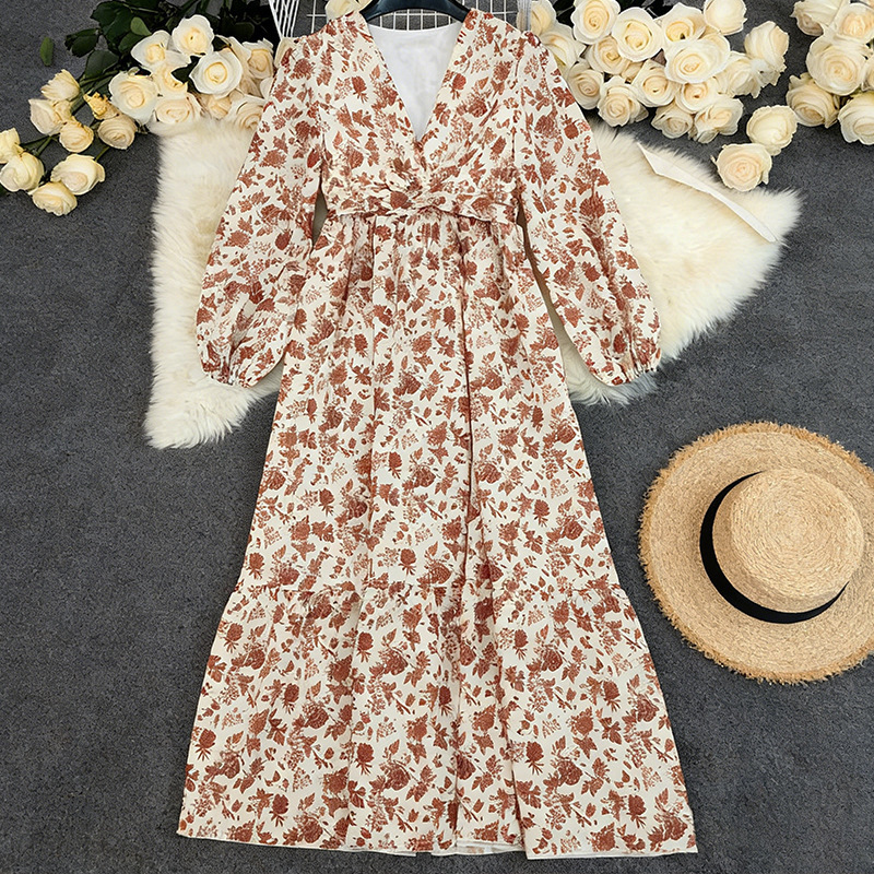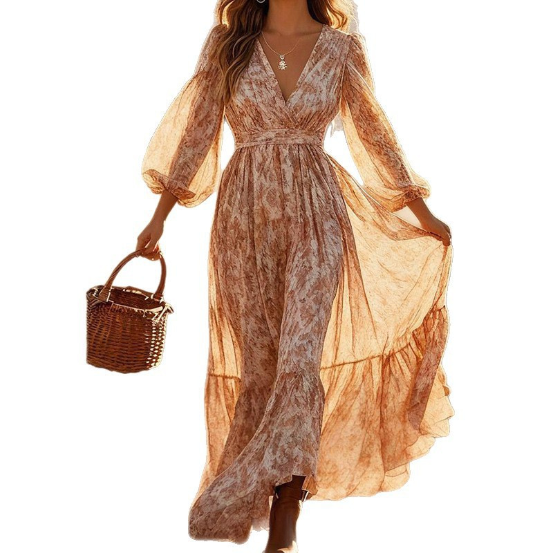 Long-sleeve High-waisted Bohemian Maxi Dress