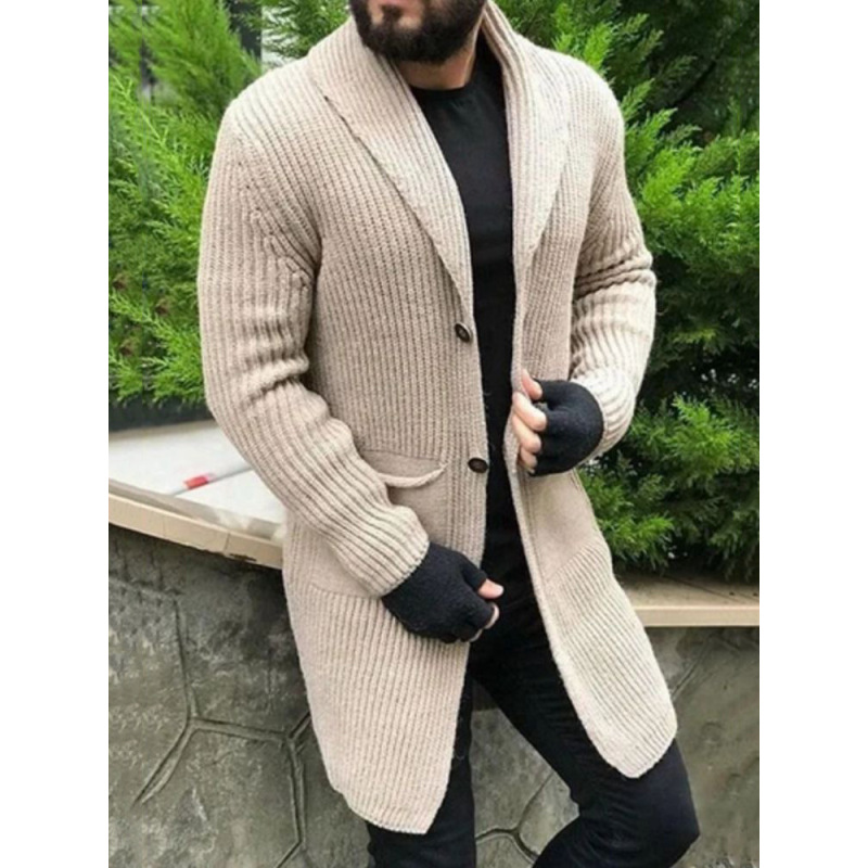 Long Sleeve Padded Cardigan Lapel Long Sweater Coat