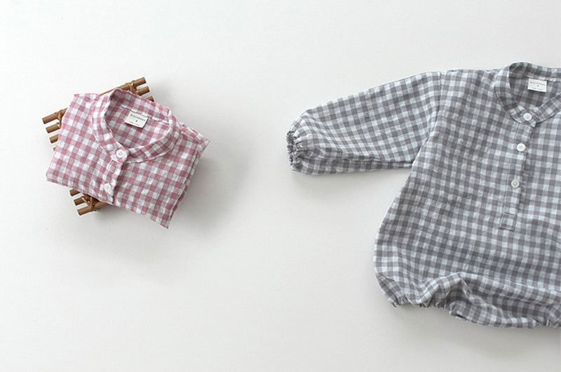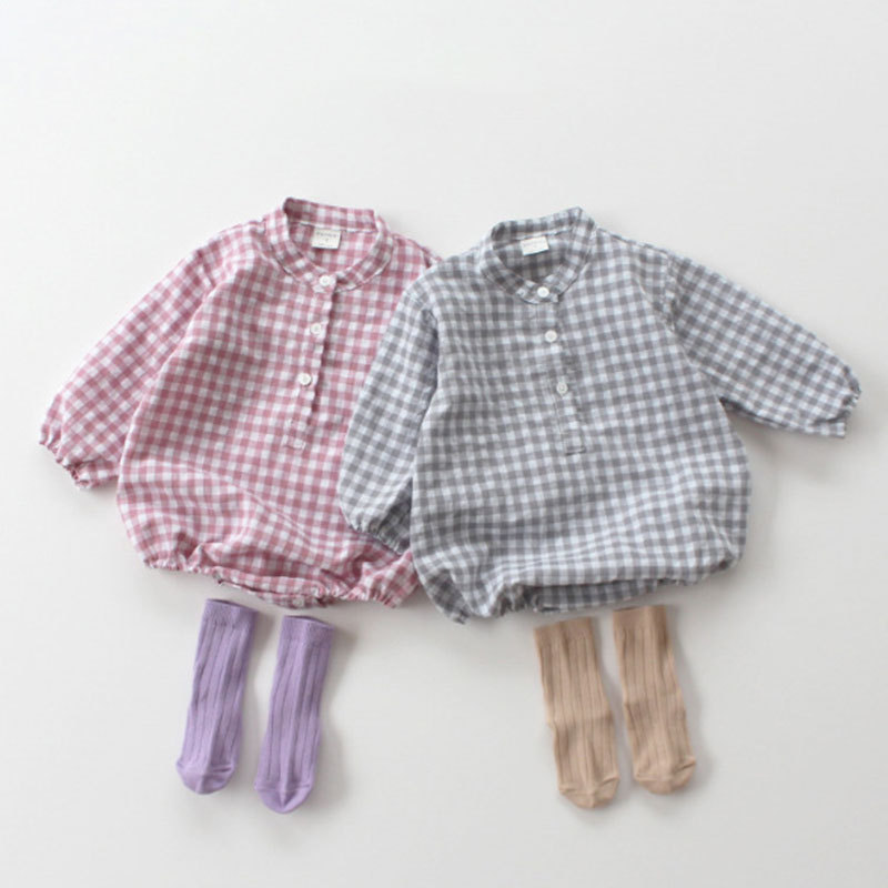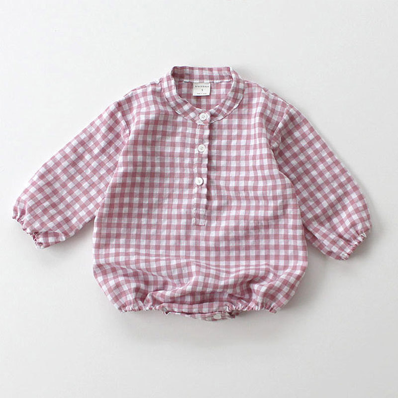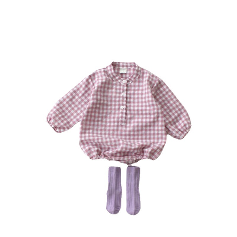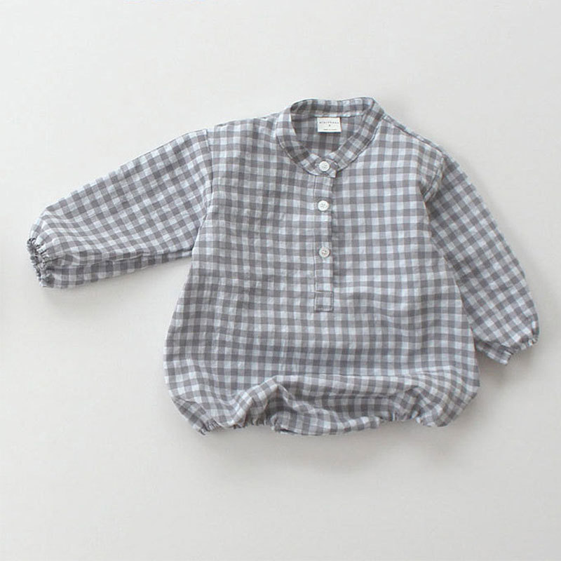 Long Sleeve Plaid Jumpsuit Baby Boy And Baby Girl Pullover Western Style Triangle Jumpsuit Baby Bodysuit Romper Shirt