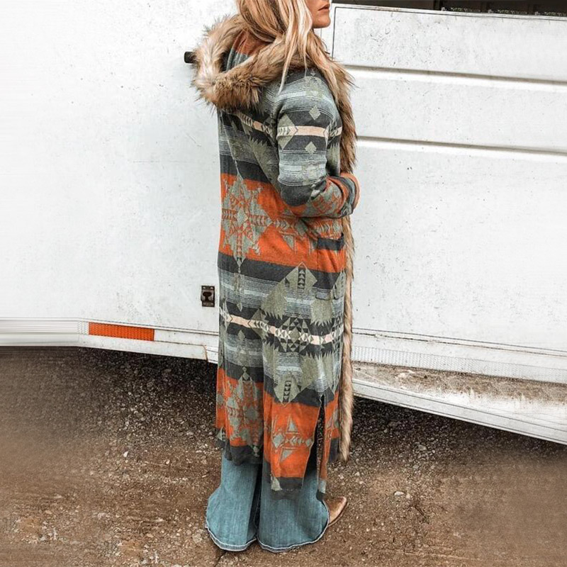 Long sleeve printed long coat