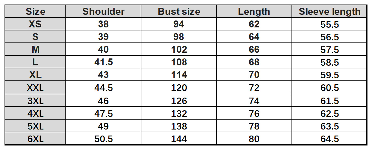 Size: XS,S,M,L,XL,XXL,3XL,4XL,5XL,6XL